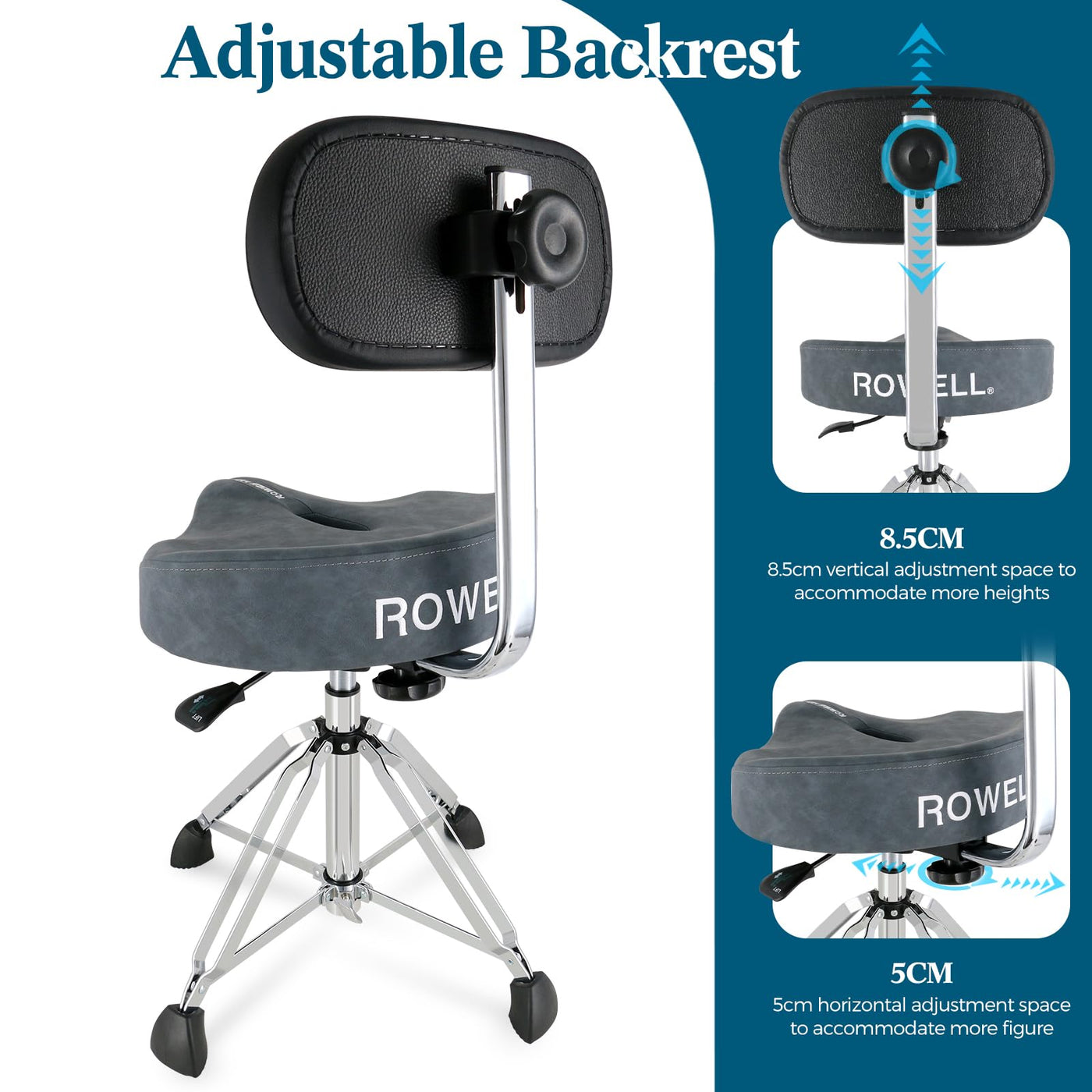 Rowell Drum Throne With Backrest Hydraulic Drum Stool Height Adjustable Airlift Drum Thrones 4 Leg Heavy Duty Drum Seat 4.3 In Thick Padded Drum Chair Drum Stools For Drummers,Guitar Players (Blue)