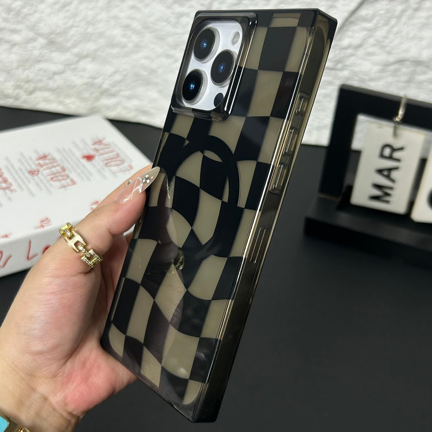 Roymonkey Checkered Magnetic Phone Case For Iphone 14 Pro Max Compatible With Magsafe - Rectangular Checker Checkerboard Twist P