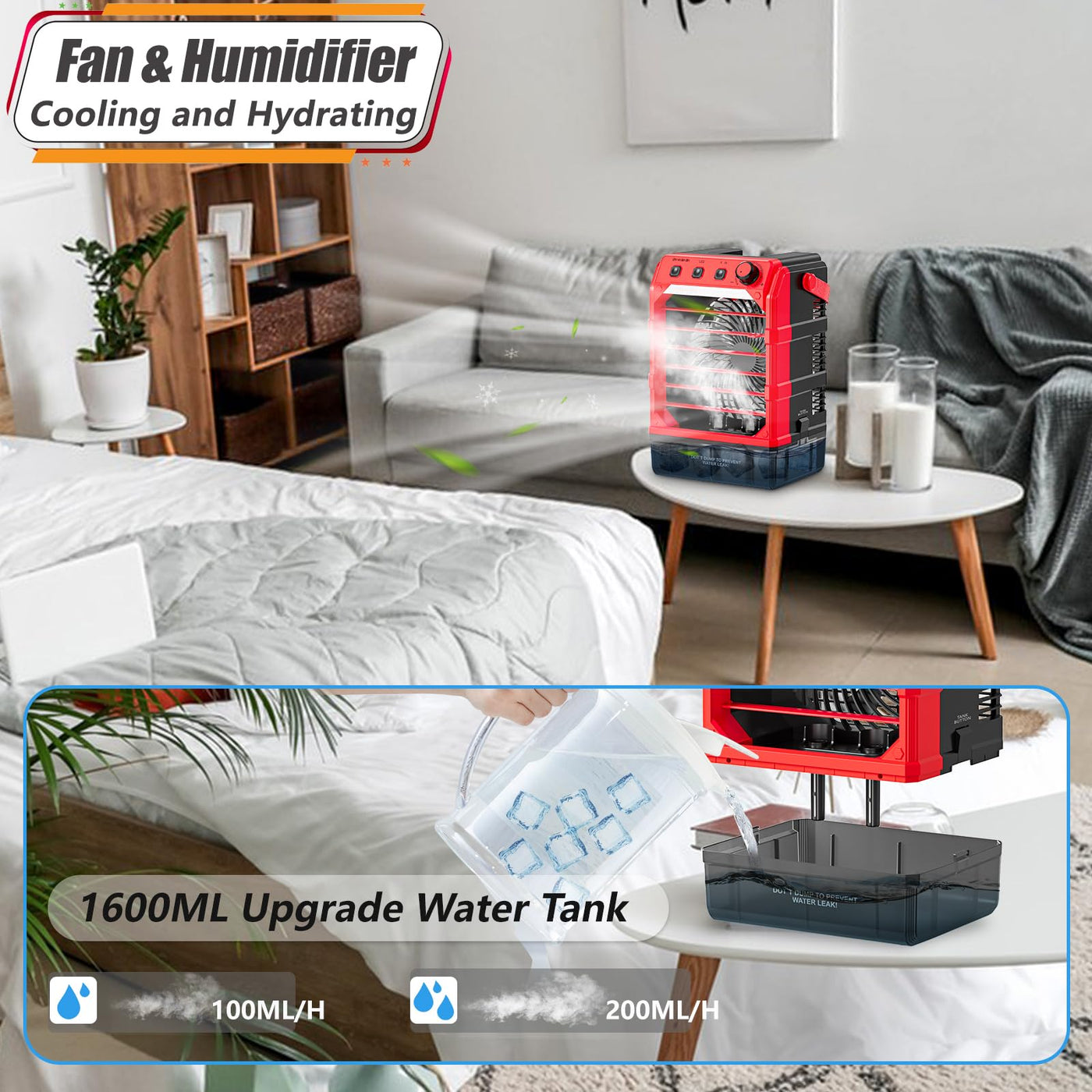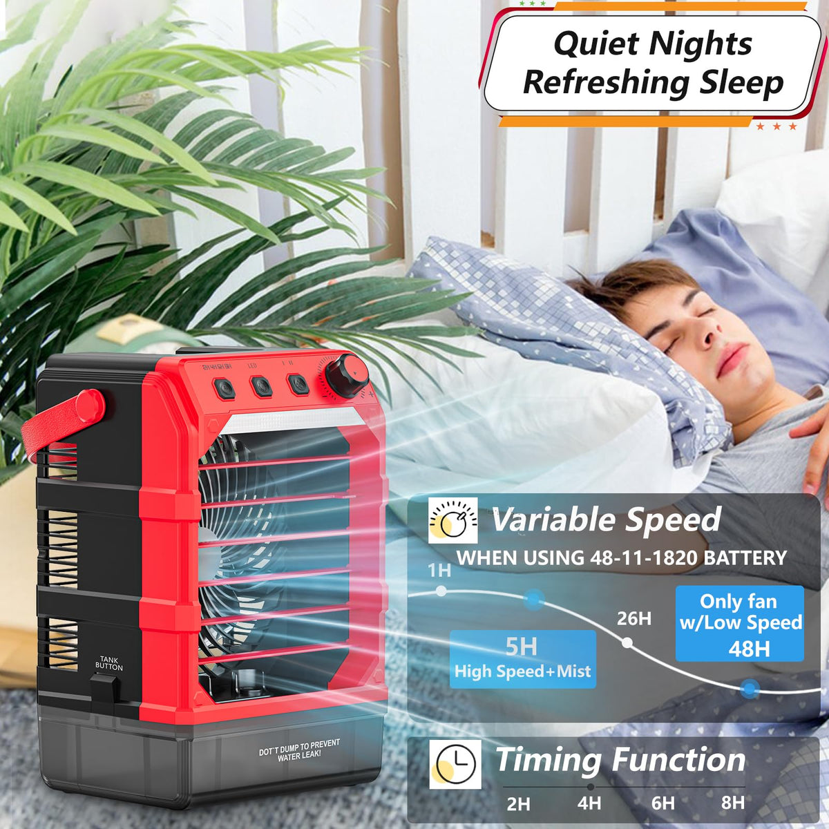 Rozlchar 2-In-1 Portable Mini Air Conditioner Misting Fan Compatible For Milwaukee 18V Battery(No Battery) W/Usb Powered, Outdoor Cooling Fan W/Mist, Timing Function, 1600Ml Water Tank & Led For Home, Outside, Camping