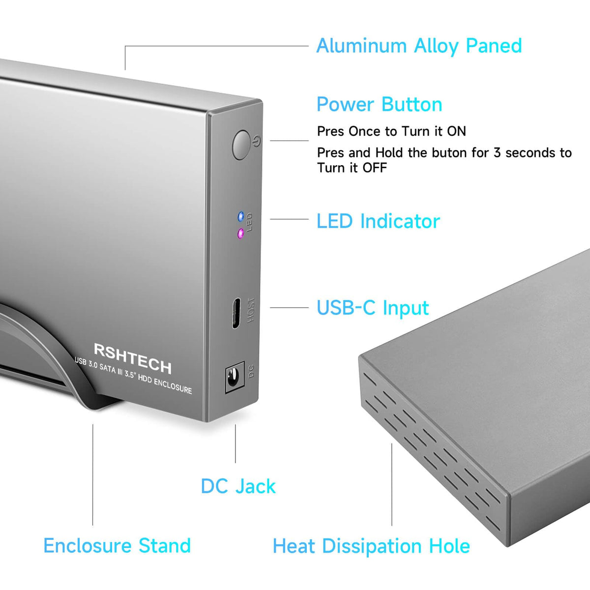 Rshtech Hard Drive Enclosure Upgraded Version 3.5'' Aluminum Usb C To Sata External Hard Drive Dock Case For 3.5 Inch Hdd & Ssd