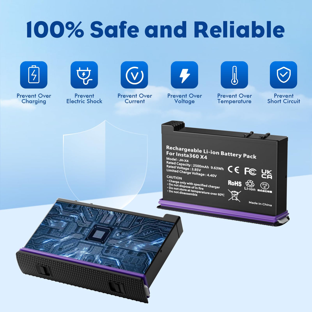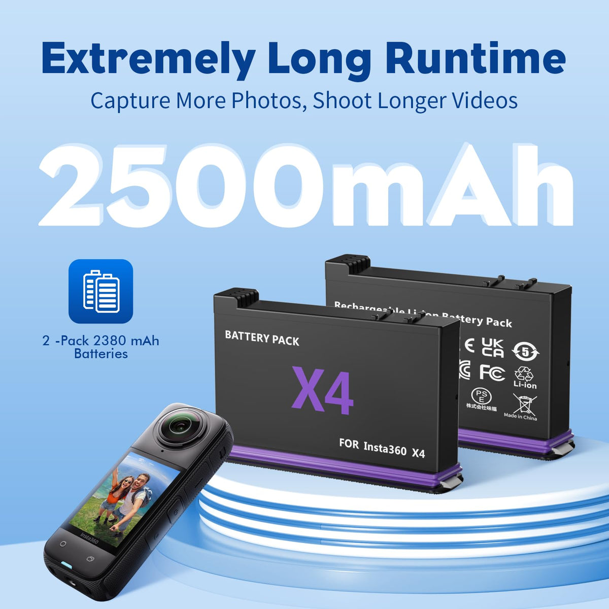 Rszfnjxry Fast Charge Hub With Batteries(2 Packs) Campatible With Insta360 X4,Quick Portable 2 Channel Battery Charge Storage Station Can Store Misro Sd Card