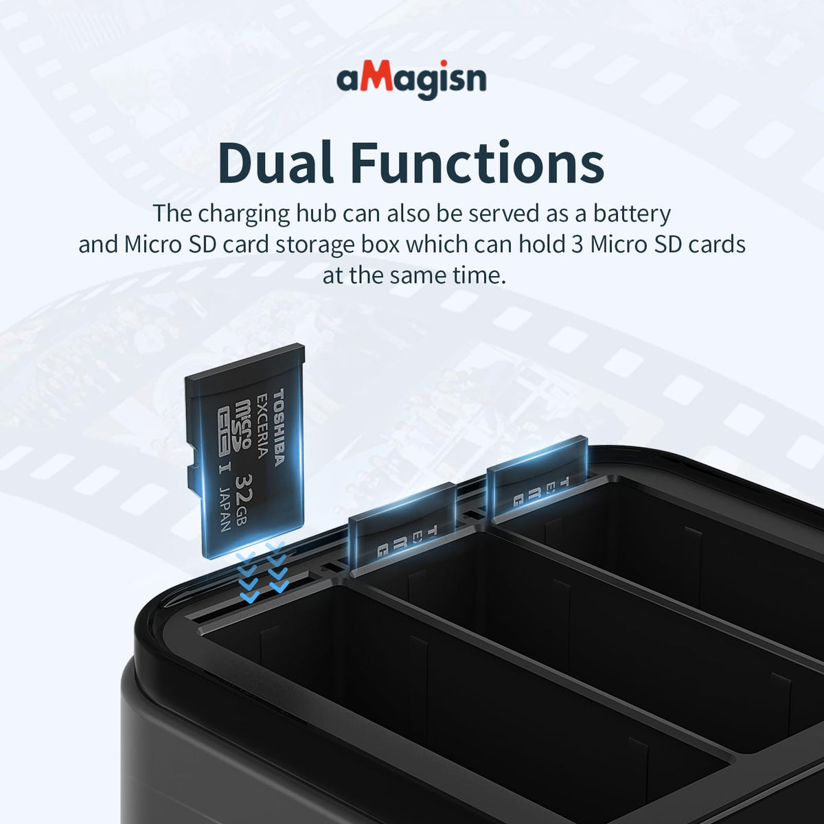 Rszfnjxry Fast Charge Hub For Insta360 Ace Pro/Ace,Fast Portable 3 Channel Battery Charging Storage Station