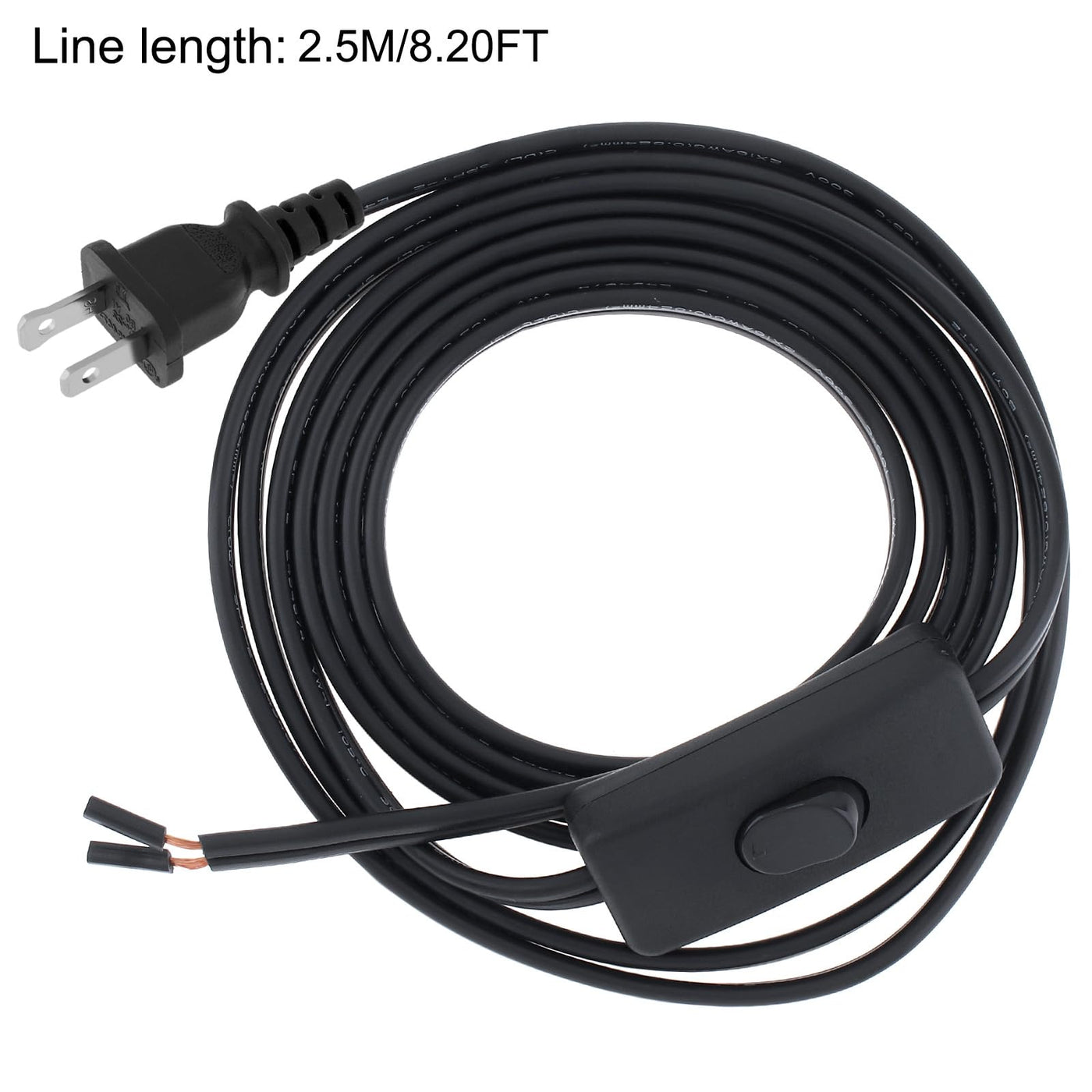 Specifications: Color: Black Rated Temperature: 105 ? Wire Length: 2.5M(8Ft) 18-Gauge 2-Conductor Standard Plug On/Off Switch Rated Voltage: 125V Current: 3A Wattage: 300W Place Of Application: Diy Lighting Projects, Christmas House Lamps Package Include: 1 X Replacement Cord With Switch