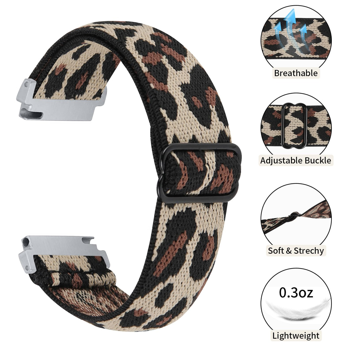 Elevate Your Fitvii Hm57 Smart Watch With Our Premium Ruentech 2 Pack Elastic Bands. These Comfortable, Adjustable Nylon Straps Are Designed For A Perfect Fit (5.3 To 8.5 Inches), Ensuring A Secure And Stylish Wear. The Soft, Breathable, And Durable Material Is Ideal For All-Day Use, Even In Hot Or Wet Weather. The Sporty, Leopard Print Design Adds A Modern Touch, Making It Suitable For Both Men And Women. The Stainless Steel Slider Allows For Easy Length Adjustment, While The Water-Resistant Feature Ensures Protection During Activities. Perfect For Daily Wear, Parties, Or As A Gift, These Bands Are A Versatile Addition To Your Smartwatch Collection.