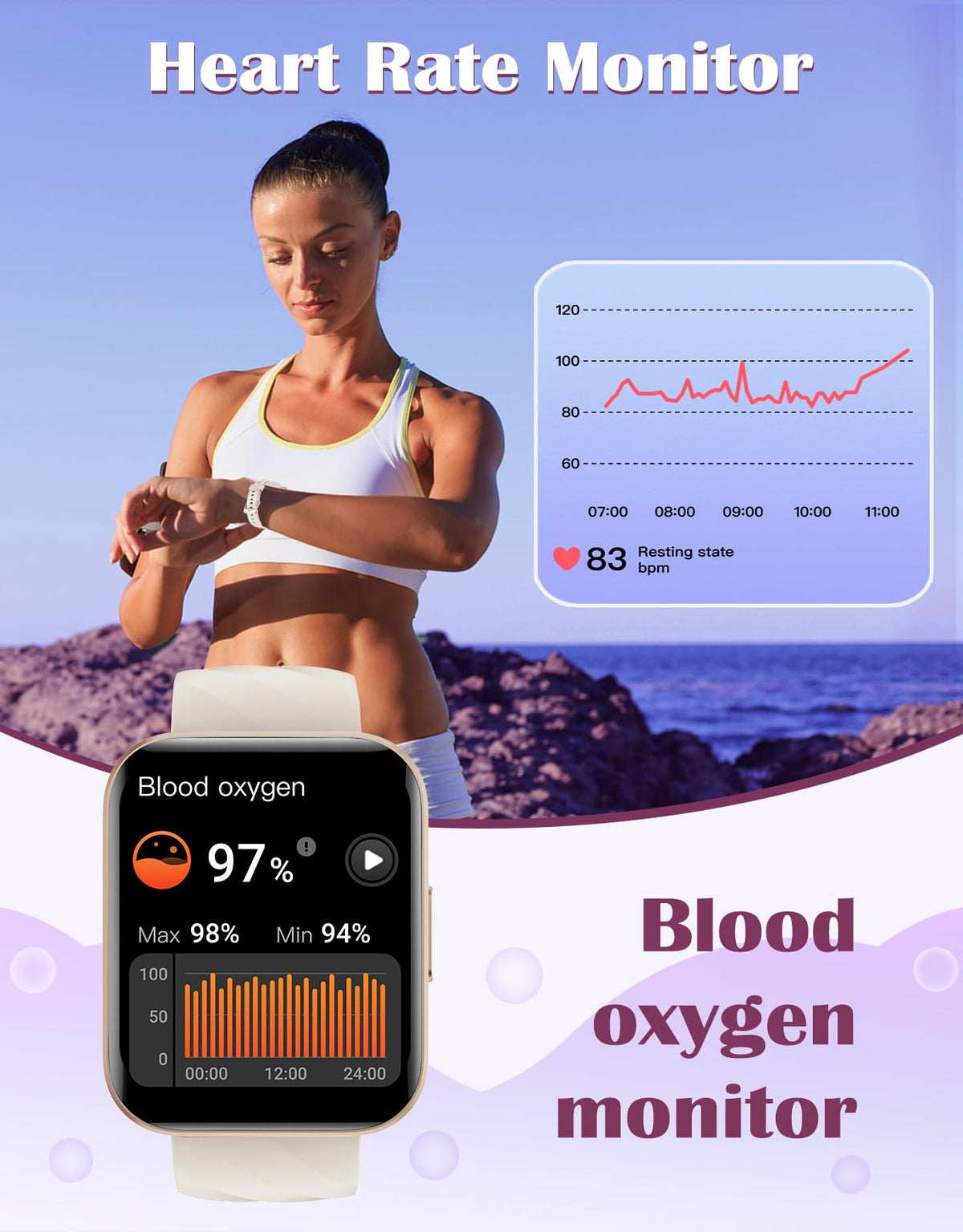 Ruimen Smart Watches For Women Men (Answer/Make Calls) Compatible With Iphone/Android Phones, 1.85'' Hd Screen Fitness Tracker H