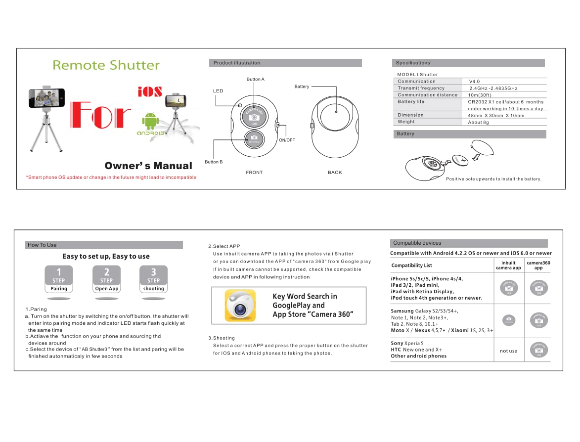 Ruittos Phone Holder For Tripod With Bluetooth Camera Remote For Iphone / Samsung .... Two Choice To Install 1.Screw Directly To The Tripod With Pivoting Arm Being Able To 360 Degrees To Rotate 2.Remove The Clamp From Pivoting Arm And Then Mount On A Tripod Width: 56-105Mm This Phone Clip Is Universal With Many Smartphones: Compatible With Iphone 15, 14, 13 Pro Max , 13/12/11/X/9/8/7.... Samsung Galaxy S21 Fold S8+ S7 Edge S9 S6 Lg V10 V20 V Vista Pixel Xl Driod Turbo 2 Huawei Honor And More Cellphones Works Vertically Or Horizontally To Hold Your Phone Screw Clamp Is Easy To Adjust. You Dont Have To Remove Your Phone When Adjust It Stabilize Phone Camera It Can Work With Tripod / Monopod To Help You Shoot Steady Video & Photos Or Take Great Selfies Simple To Use When Traveling, Hiking, Fishing Or Great Nature Shots, Videos Specification Mobile Phone Clip Size: 58Mm- 105Mm Maximun Weight: 1 Kg Weight:72.5G Interface: International Standard Screws 1/4 Material : Plastic Package Included: 1 X Bestshoot Tripod Adapter Clamp 1 X Phone Camera Remote Controller