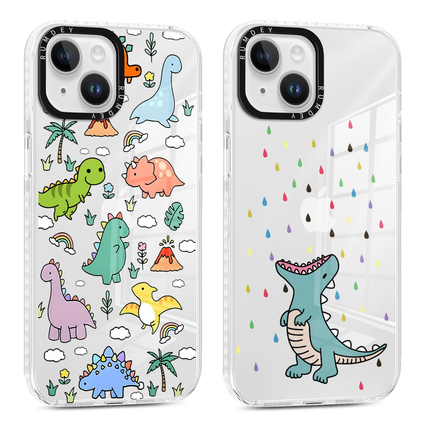 Rumdey 2 Pack Cartoon Animals Pattern For Iphone 14 Plus 6.7'' Phone Case, Cute Dinosaur Design Clear Cases Soft Silicone Slim T