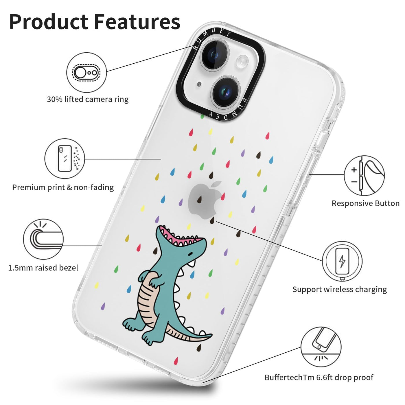 Q: How does the RUMDEY Clear Bow Phone Case protect my phone?A: The case features a full-body protective design with raised edges around the screen and camera, reducing the impact from falls and protecting against daily wear and scratches.