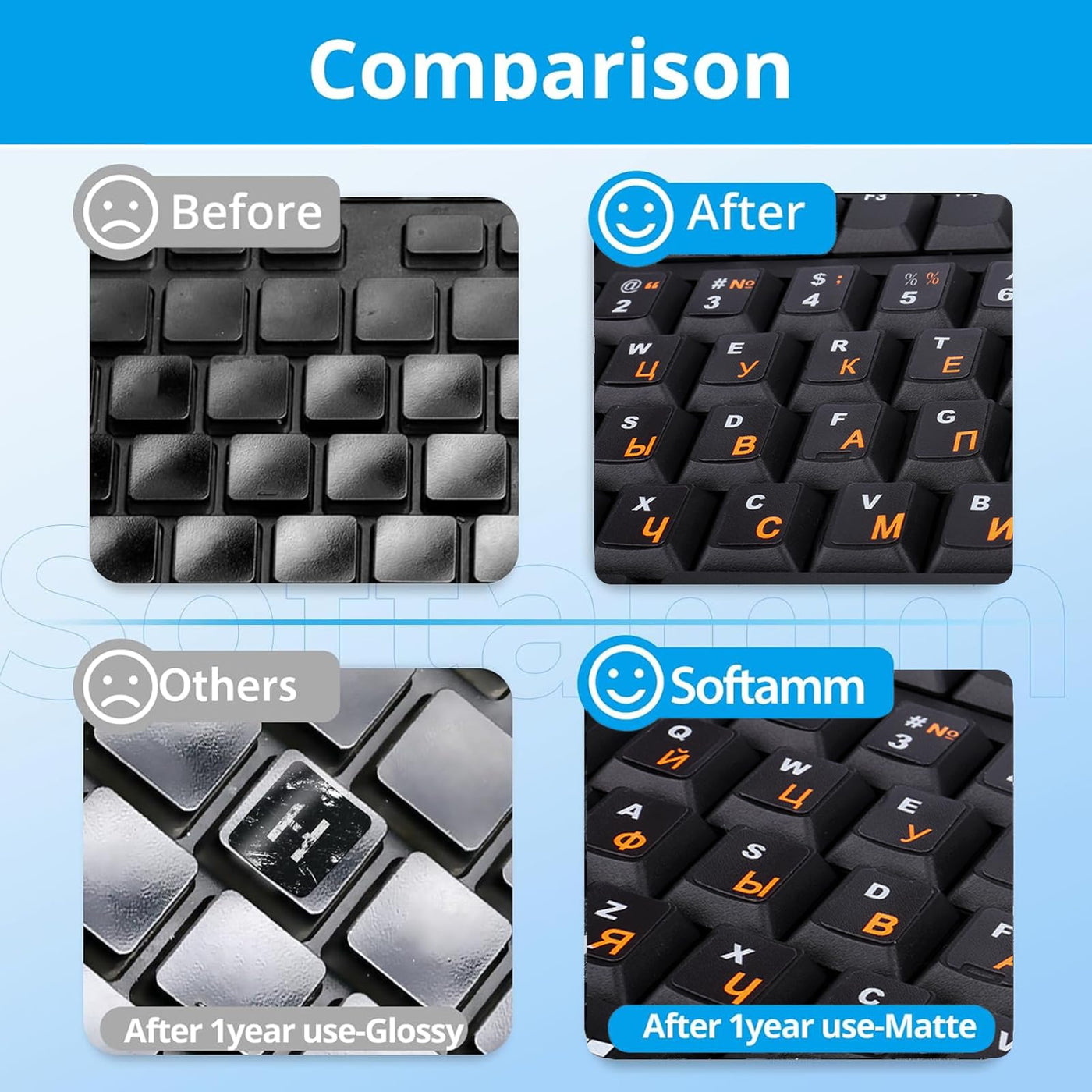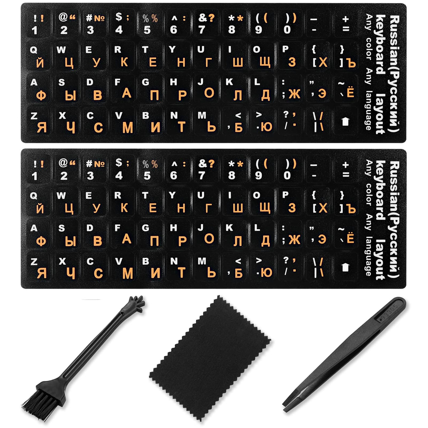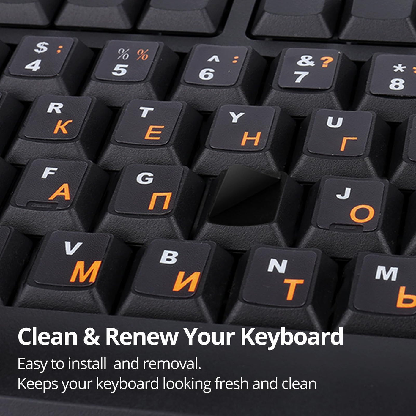 Russian Keyboard Stickers[5 In 1],Cyrillic Keyboard Letter Replacement Sticker Black Background With Orange Lettering,Russian En