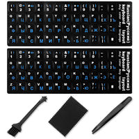 Russian Keyboard Stickers[5 In 1],Cyrillic Keyboard Letters Replacement Sticker Black Background With Blue Lettering,Russian Eng
