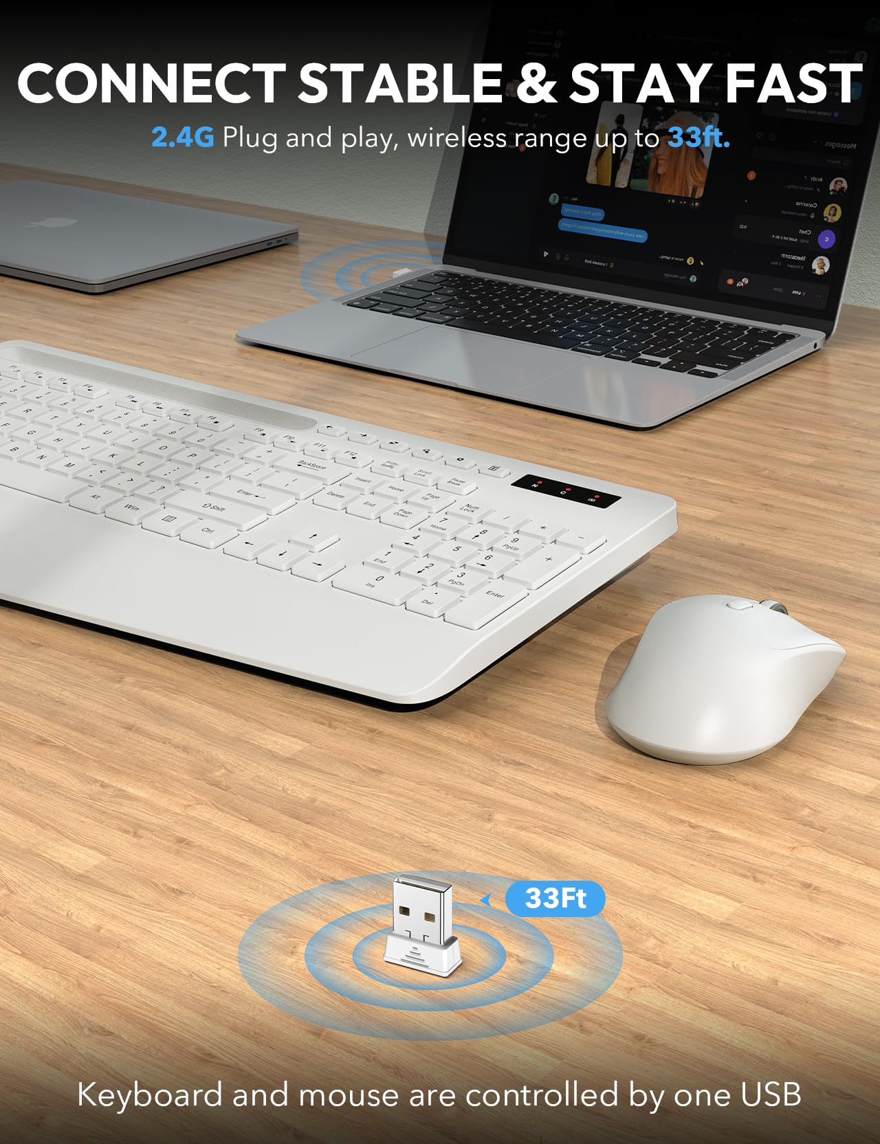 Sablute Wireless Keyboard And Mouse With Ergonomic Wrist Rest, Phone Holder, 2.4G Lag Free Keyboards Combo, Silent Cordless Set
