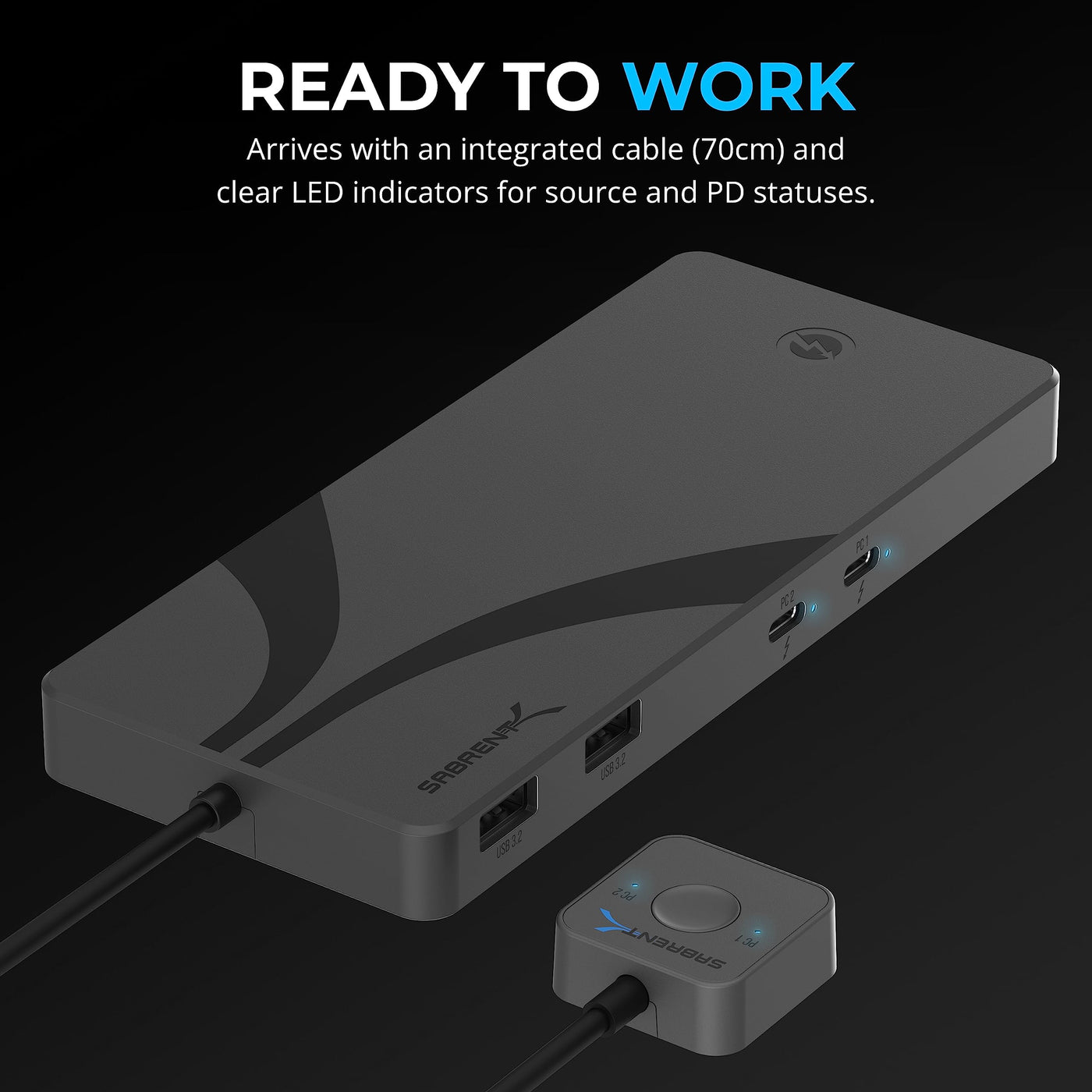 Sabrent Thunderbolt 4 Kvm Switch, Peripheral Sharing With 3X Thunderbolt 4 Usb C 40Gbps, 2X Usb-C Charging 60W (Pd 3.0) | 4X Usb