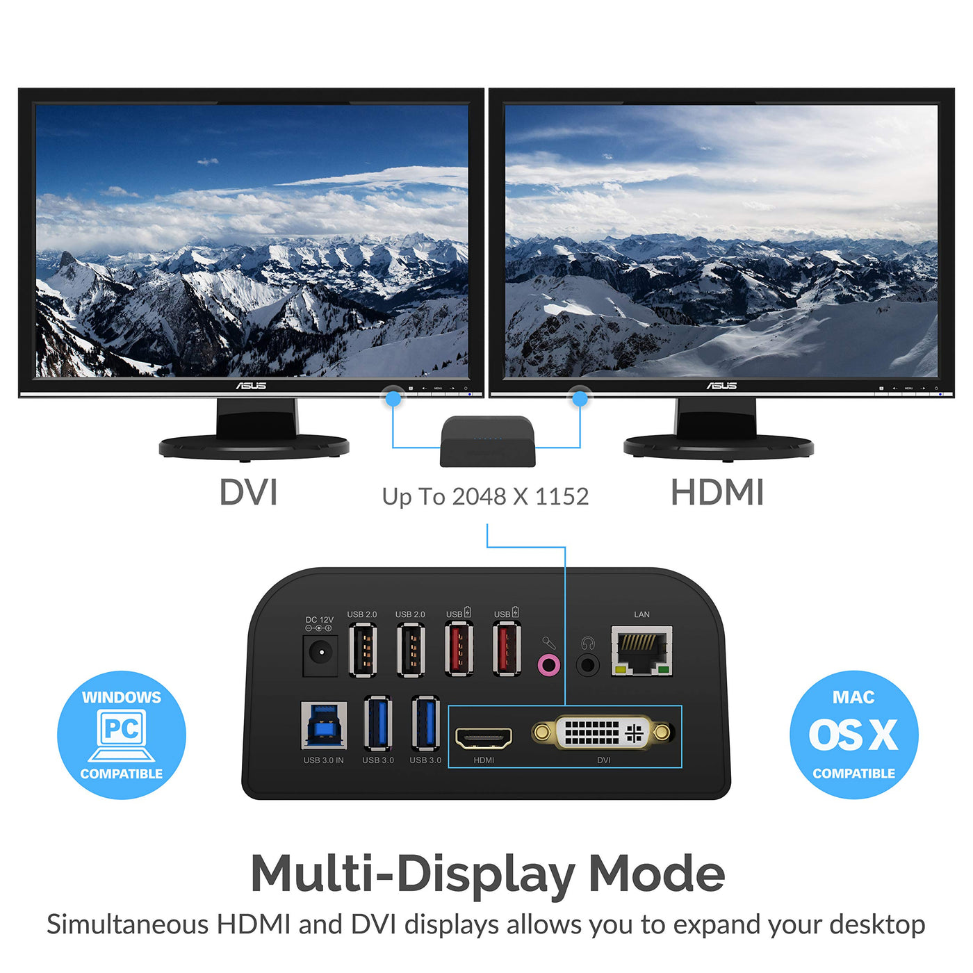 Upgrade Your Windows Laptop, Windows Desktop, Windows Tablet (Except Windows Rt), Mac, Macbook, Macbook Air Macbook Pro And More.Improve Productivity When You Multiply Your Screen Space With One Or Two High-Resolution External Monitors. The Sturdy Stand Holds The Tablet Upright To Provide An Additional Displaywith Today'S Technology Comes Portability.Connect All Your Accessories & Peripherals Through A Single Usb Cord.Now With One Simple Usb Cord, You Can Have Access To Up To Two Full-Hd Displays (Hdmi And Dvi-I) For Mirroring/Extending Your Desktop To External Monitors, As Well As Gigabit Ethernet Network Data, Microphone, Speakers, External Hard Drive, Optical Disk Drive, Printers, Usb Keyboard, Mouse And Many Other Usb Devices.2 Ports Highly Integrated Usb 3.0 Inputstaking Advantage Of Super-Speed Usb 3.0'S Bi-Directional Throughput, The Ds-Rica Gives You The Ability To Connect Up To Two Additional Usb 3.0 Ports.2 Ports Usb 2.0 Inputsexpand By Connecting Up To Two Usb 2.0, Or 1.1 Devices - Great For Printers, Usb Keyboard, Mouse And Many Other Usb Devices.2 Usb Charging Portstwo Additional Charging Port (2.4A) Offers Enough Current To Charge Either A Smartphone Or A Tablet At High Speed. Multiple Display Monitorwith The Hdmi, Dvi Ports And Vga Adapter, You Can Connect Multiple Monitors In Hd 1080P Allowing You To Multi-Task And Important Information About Macos 10.13.4 Update: We Have Become Aware That Installing Macos Release Version 10.13.4 Will Cause Displaylink Connected Displays To Go Blank After The Os Upgrade, With The Current Displaylink Driver [4.1] Installed. Functionality Such As Ethernet And Audio, Where Implemented, Is Unaffected. We Have Alerted Apple To This Issue And Are Working Hard To Find A Resolution. These Features Continue To Work As Expected In 10.13.3.