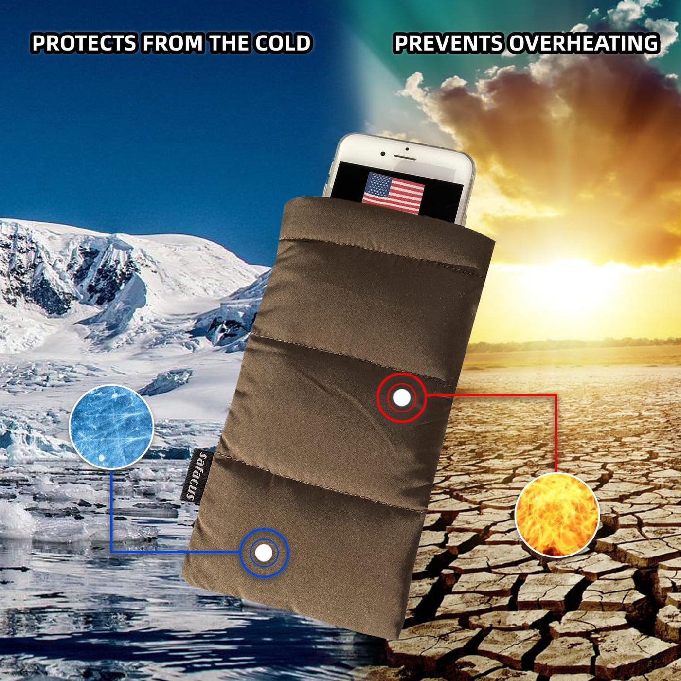 Q: How does the SAFACUS Thermal Phone Case protect my phone from extreme temperatures?A: This thermal phone case is designed to maintain your phone's standby time longer under high and low temperatures, providing versatile protection against sun, snow, heat, and cold, making it ideal for outdoor activities.