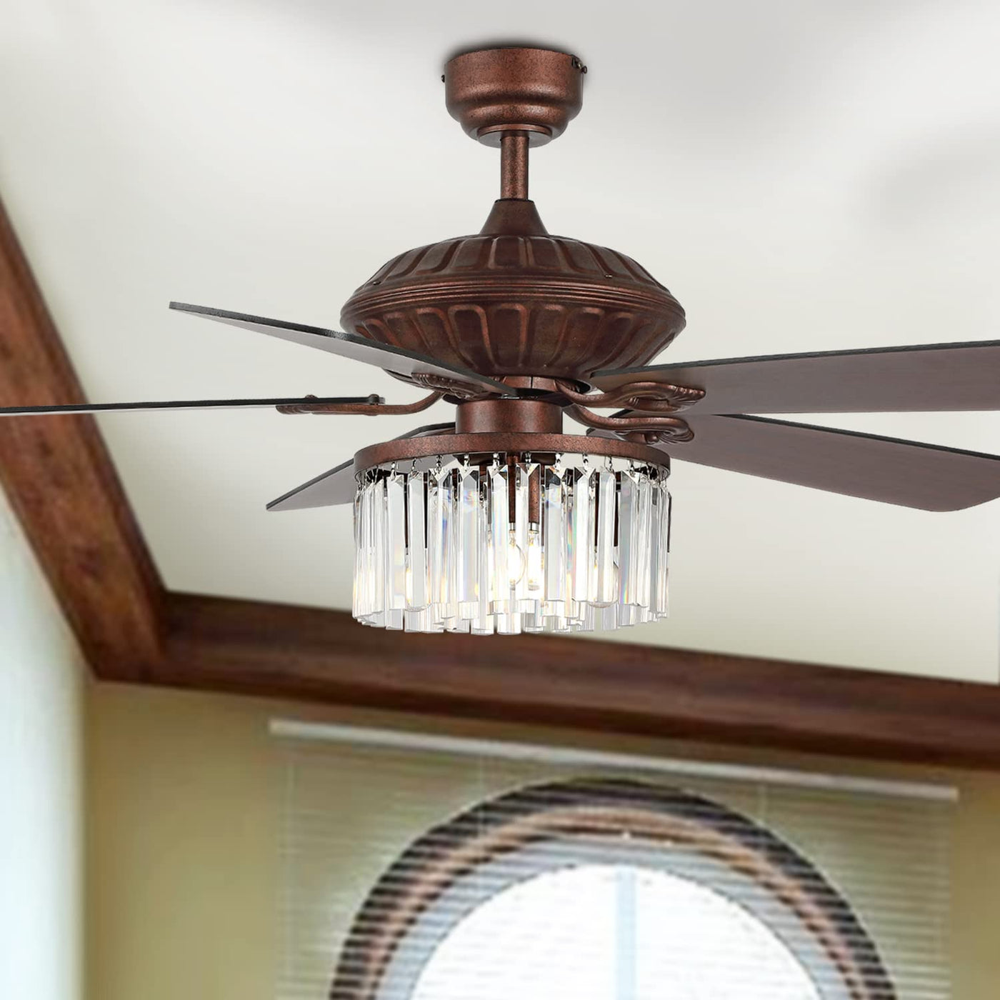 [Perfect For Any Room]: Perfect For Improving Air Circulation In The Bedroom, Dining Room, Living Room, Or Home Office Space; Produces A Low Level Of Noise For A Relaxing Atmosphere; Includes Remote Control With Three (3) Different Speed Modes (Low, Medium, And High) | [Stylish Design]: Features Five (5) Finely Sculpted Blades In Dark Walnut With A Rust Colored Base; Art Deco-Inspired Hanging Crystals Provide A Glamorous Look; Remote Control With Three (3) Speeds (Low, Medium, And High) | [Efficient Led Bulbs Included]: Conveniently Includes Led Bulbs With A 25,000 Hour Lifespan And Uses 90% Less Energy Than Regular Bulbs; Safavieh Ceiling Fan Lights Are Etl Listed And Ul Certified | [Full Dimensions]: Full Dimensions Are 52'' Wide X 52'' Deep; Height Ranges From 16'' To 21'' To 26'' Depending Upon If It'S Ceiling Mounted Or Used With A Down Rod | [Trusted Brand]: Safavieh Has Been A Trusted Brand In Home Furnishings For Over 100 Years, Providing Quality Craftsmanship And Unmatched Style; Begin Your Rug, Furniture, And Lighting Search With Safavieh And Explore Over 100,000 Products Today