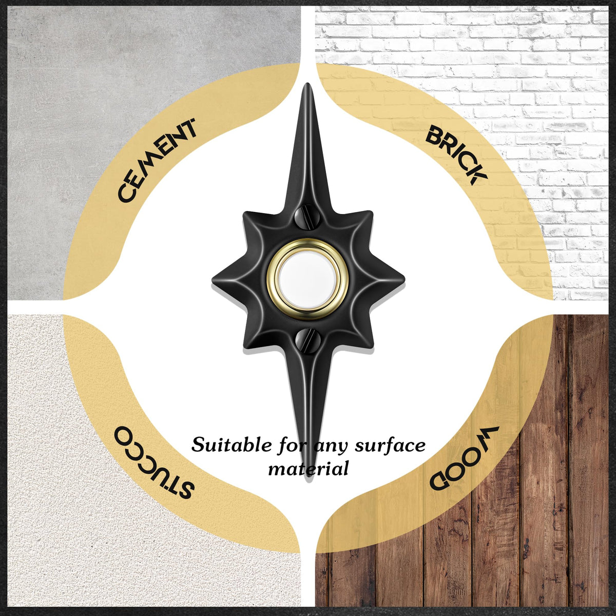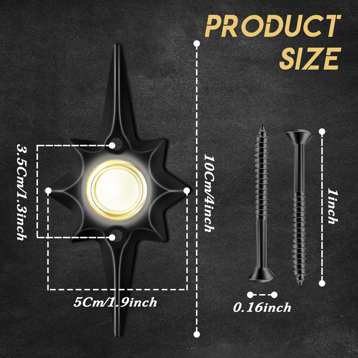 The Illuminated Bethlehem Shaped Doorbell Button Guides Your Nightly Guests To The Right Place. No Need To Worry About Getting Home Too Late To Find Your Doorbell Button. Features: The Bethlehem Star Decorative Doorbell Is Small And Lightweight, Making It The Nice Christmas Gift For Friends, Family, Or Coworkers. Bright Led Light: The Star Of Bethlehem Doorbell Emits A Bright Light To Guide The Right Way In The Dark. Waterproof And Uv Resistant: Built In Wire To The Housing Makes The Doorbell Usable In Harsh Environments, Can Be Applied Many Times. Specifications: Main Color: Black Size: Approx. 4.13 X 1.97 X 1.18 Inches/ 10.5 X 5 X 3 Cm Material: Metal Style: White Light Mount Type: Recessed Mount Shape: Bethlehem'S Star Shaped Package Includes: 1 X Star Dorbell Button 2 X Screws Warm Note: If You Use A Digital Ringtone (Play The Melody. Speakers With Sound), Diodes Are Required (Not Included). If You Are Using A Mechanical Doorbell (2 Note Sound. Like A Mallet Hitting A Metal Bar), No Diode Is Needed. Due To The Special Design Of The Back Of The Doorbell Button, It Is Necessary To Design A Groove On The Surface According To The Size In Advance.