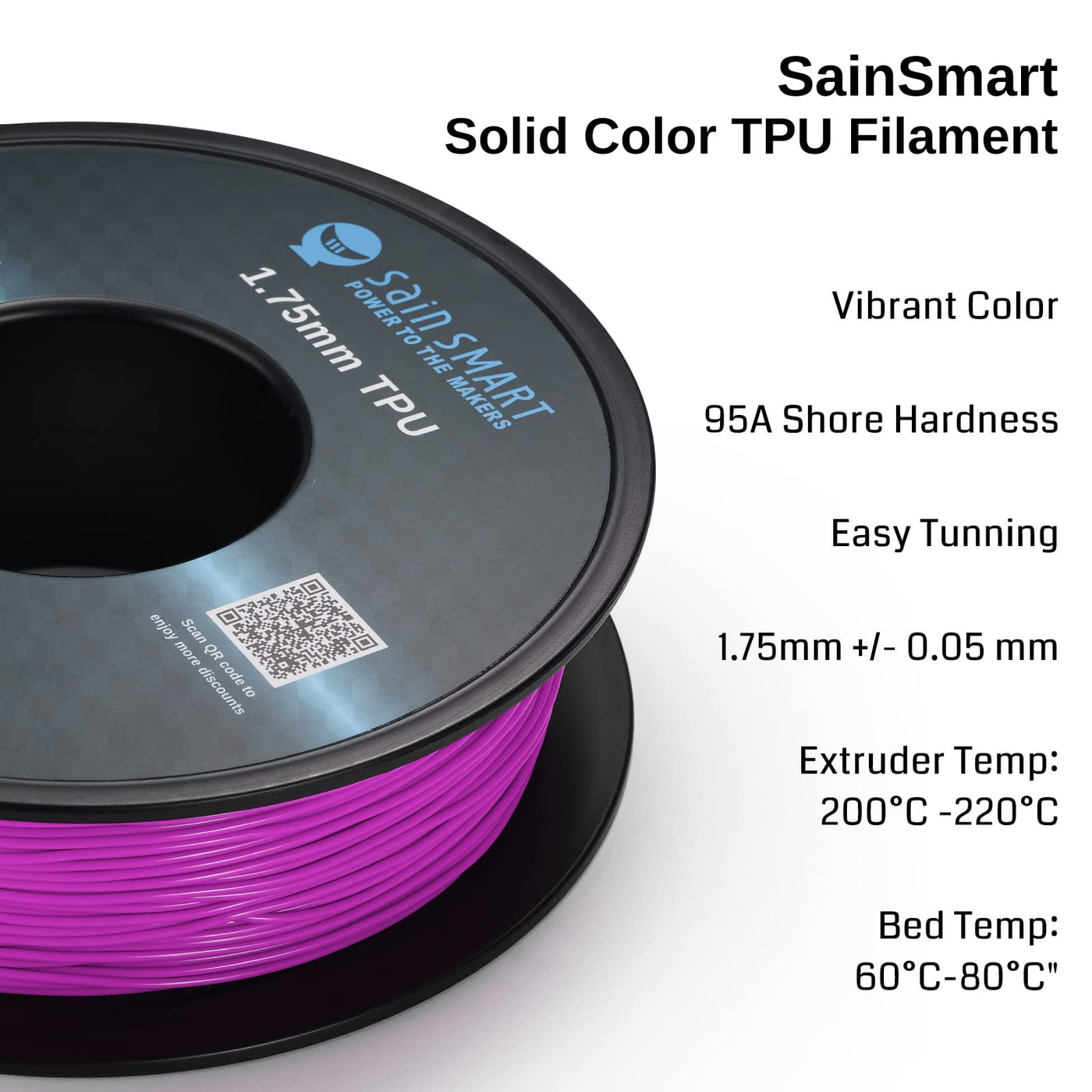 Specification-Material: Rep-Flex Tpu - Vacuumed Sealed With Desiccant-Shore Hardness: 95A-Weight: 800G Per Spool-Diameter: 175Mm (+- 005Mm) Printing Tips:-While Using Tpu Filament, A Direct Drive Extruder Is Recommended In That It Can Produce Parts Of Higher Quality And Avoid Jamming A Bowden Extruder Can Also Achieve Decent Print Quality, But It Requires Proper Setting And Calibration-Recommended Extruder Temperature:195 - 230Ac-Recommended Platform Temperature: 40 - 60Ac-Nozzle Diameter: 04-08Mm-Printing Speed: 15-30Mms-Please Remember To Clean The Extruder Nozzle Before Loading This Filament To Avoid Jamming-If You Have Problems While Printing, Please Try To Slow Down The Printing Speed And Adjust The Temperature If Both Attempts Fail, Please Feel Free To Contact Our Support Whats In The Package Sainsmart Tpu Flexible Filament 175Mm 800G X 1Sainsmart Tpu Profiles (Cura & Simplyif3D):Https:Bitly31Ln1Tb