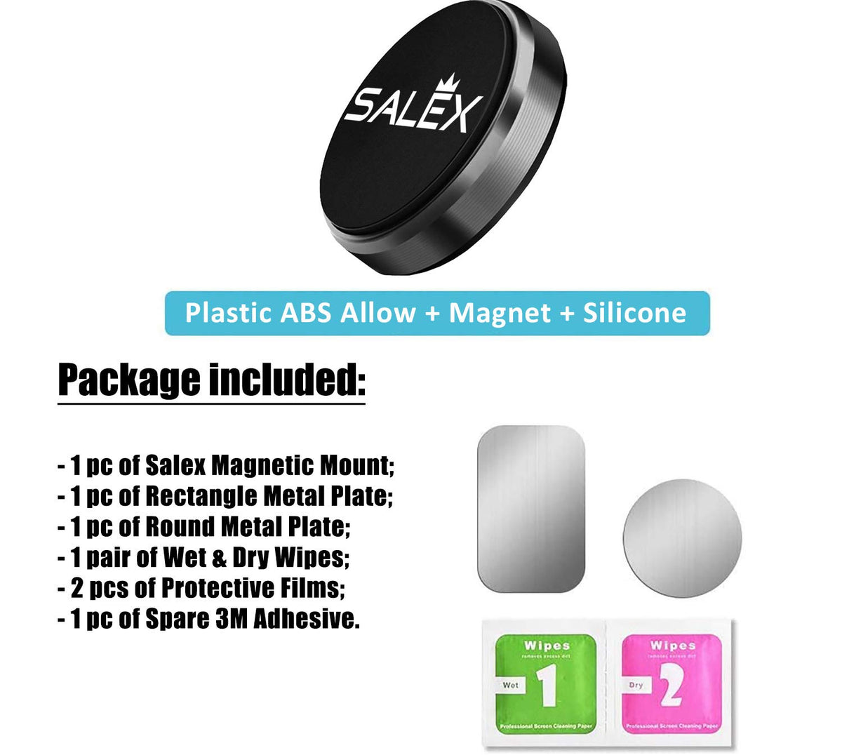 Salex Magnetic Phone Car Mount With 3M Adhesive. Black Flat Cell Phone Holder For Car Dashboard, Truck, Wall, Mirror, Table. Uni