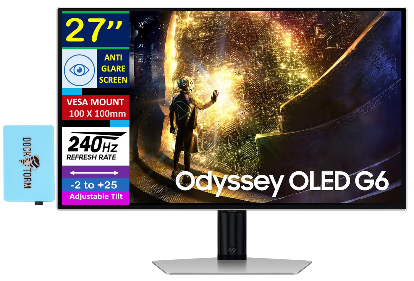 Samsung 27 Odyssey Oled G6 Qhd 240Hz 0.03Ms Freesync Premium Pro Gaming Monitor, Flicker Free, Vesa Mount (100Mm), Hdmi, & Dockz