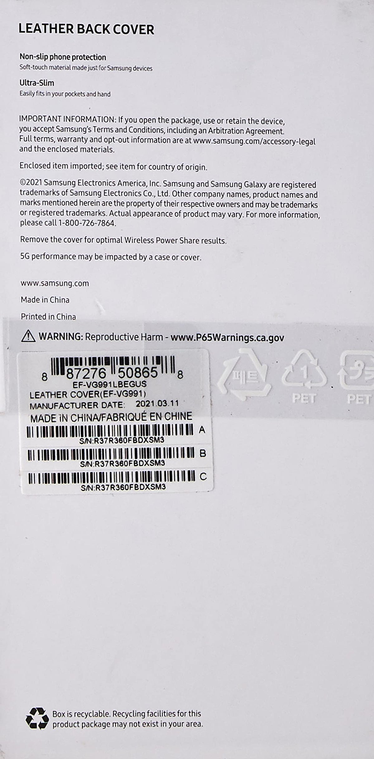 Q: Is the Samsung Galaxy S21 case compatible with wireless charging?A: Yes, the Samsung Galaxy S21 Leather Back Cover is designed to be compatible with wireless charging, ensuring you can charge your device without removing the case.