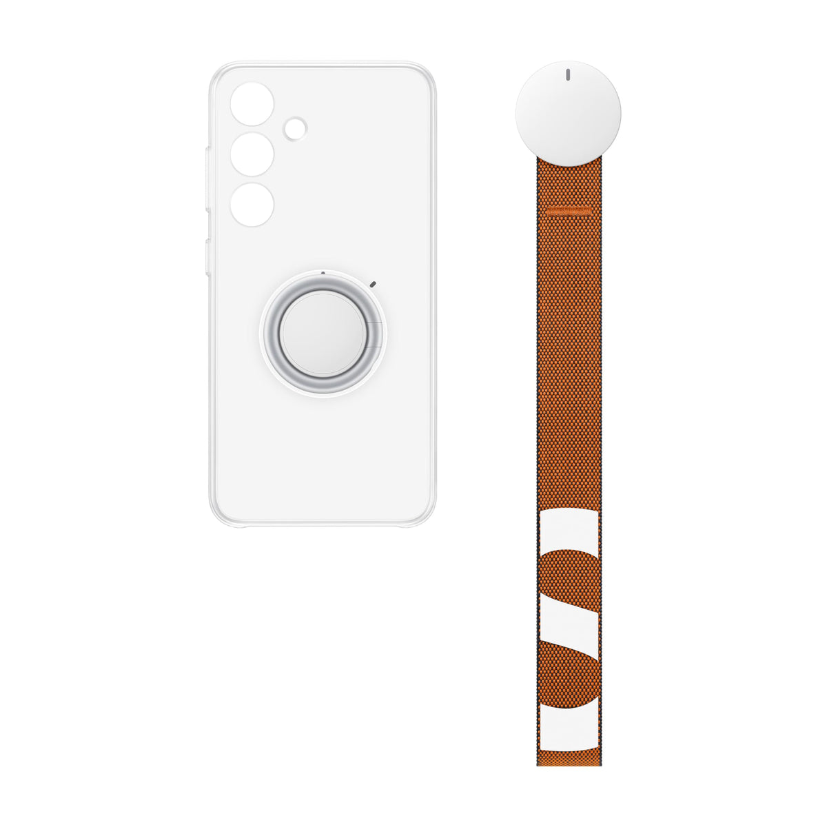 Q: What makes the SAMSUNG Galaxy S24 Clear Gadget Phone Case unique?A: The SAMSUNG Galaxy S24 Clear Gadget Phone Case features a versatile grip that doubles as a kickstand, offering hands-free viewing. It includes a wrist strap for added security and is made with eco-conscious materials containing post-consumer recycled content.