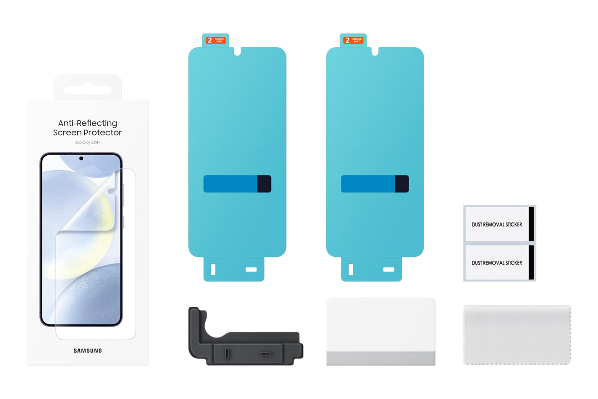 Q: What makes the SAMSUNG Galaxy S24+ Anti-Reflecting Screen Protector different from other screen protectors?A: The SAMSUNG Galaxy S24+ Anti-Reflecting Screen Protector is designed specifically for the Galaxy S24+ smartphone, featuring anti-reflective technology that enhances visibility in bright light while maintaining clarity and color vibrancy. Its transparent design ensures your display remains unobstructed.