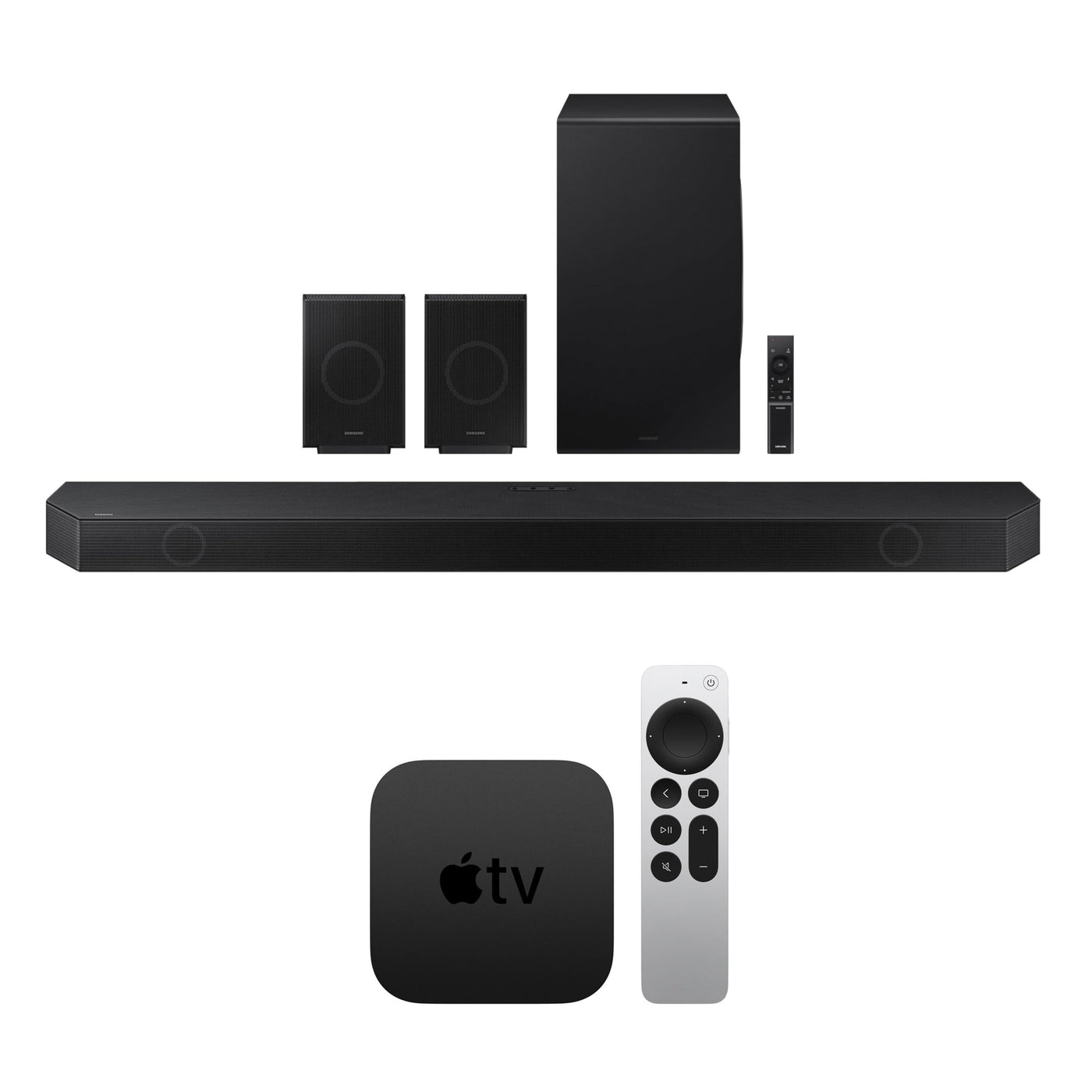 Bundle Includes:(1) - Samsung Q990D 11.1.4 Soundbar Speaker System(1) - Appletv 64Gb 4K&Nbsp; Q990Experience Our Greatest Of All Time-Level Audio Synchronized With Your Tv&Rsquo;S Speakers And Customized To Your Living Space. With Intelligently Tuned, 11.1.4 Ch. True Dolby Atmos Sound, The Q990D Stands Above The Rest. Q-Symphony Requires A Compatible 2020-2024 Samsung Tv. &Bull; Pair A Samsung Tv With A Samsung Soundbar To Unlock A New Level Of Powerful Audio. Experience Content Like Never Before With Q-Symphony.&Bull; Feel Sound All Around With 11 Front-Facing Speakers, 1 Subwoofer And 4 Up-Firing Channels.&Bull; Skip The Hdmi Cables And Enjoy Truly Elevated Audio With Wireless Dolby Atmos.&Bull; The Up/Side-Firing Rear Speakers Use Your Ceiling And Walls To Create Dense Layers Of All-Around Sound.Appletvapple&Nbsp;Tv 4K (3Rd Generation) Brings The Best Of Tv Together With Your Favorite Apple Devices And Services &Mdash; Including The New Facetime Experience On Tv.Footnote&Nbsp;With 4K Dolby Vision, Hdr10+, And Dolby Atmos, It Delivers A Truly Cinematic Experience To Your Screen.Footnote