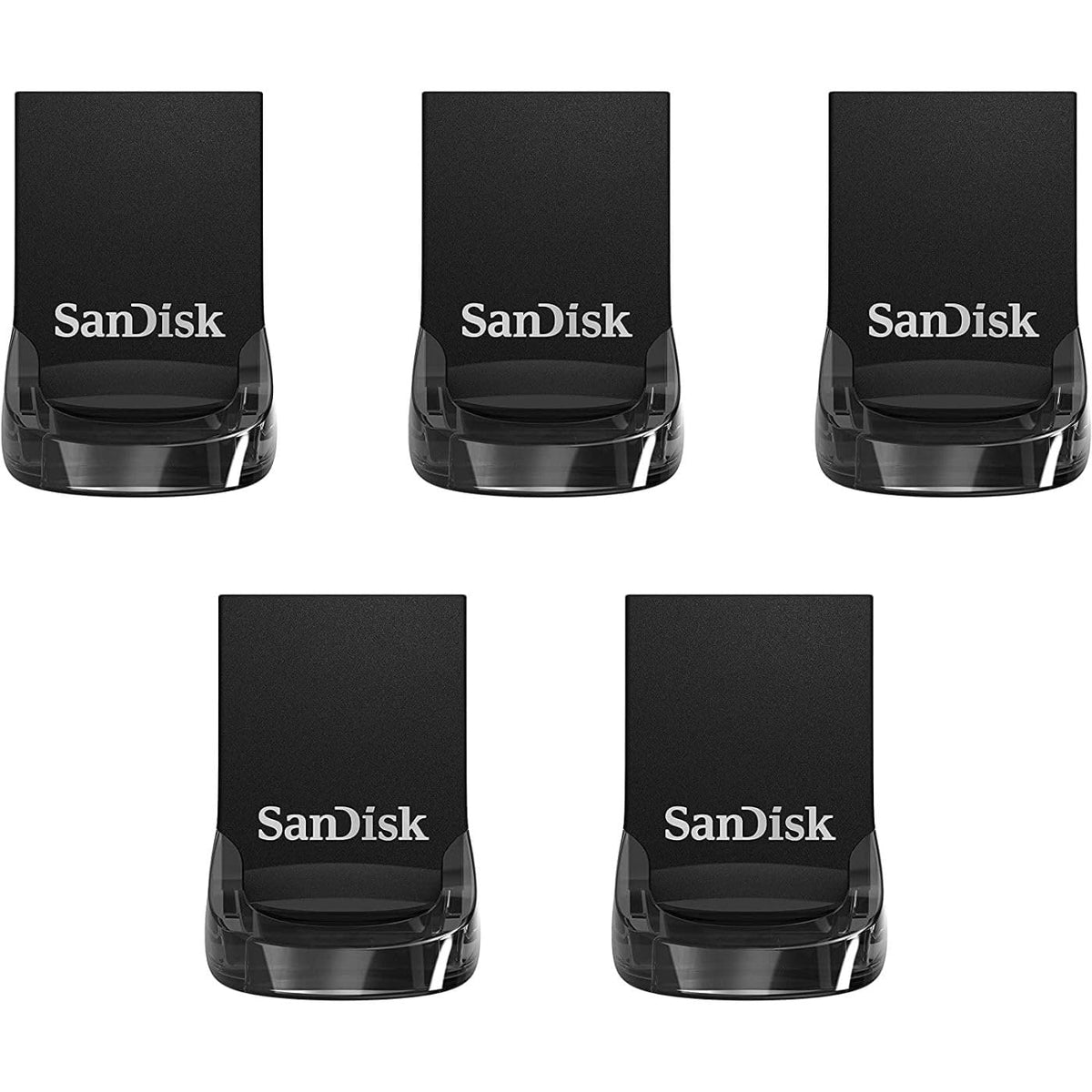 Sandisk 128Gb 5-Pack Ultra Fit Usb 3.2 Gen 1 Flash Drive (5X128Gb) - Up To 400Mb/S, Plug-And-Stay Design, Non-Retail Packaging -