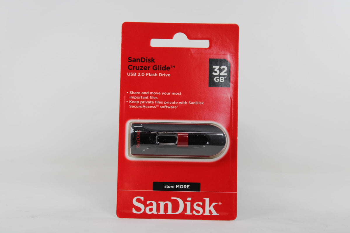 Product Descriptionitem No. 0385881 32 Gb Usb Drive More Information More Information Product Name Sandisk Cruzer Glide Usb 2.0 Flash Drive, 32Gb Package Count 1 Container Type Carded Pk Country Of Manufacture China Prop 65 No Safety Dimensions Dimensions Depth 0.47 Inches Width 4 Inches Height 6 Inches Weight 0.01 Lbfrom The Manufacturerthe Cruder Glide Usb Flash Drive Has A Sleek, Streamlined, Compact Design With A Retracting Connector And Packs Enough Capacity To Carry All Your Favorite Media With You, From Hd Video To Photo Albums To Music Libraries To Large Documents. With Drag And Drop File Loading, It'S Easy To Start Storing, Transporting And Sharing Data Immediately. The Cruder Fit Usb Flash Drive Comes With Sandisk Secure Access, Which Creates A Password-Protected Private Folder On Your Flash Drive. With Your Private Files Protected With 128-Bit Aes Encryption, You'Ll Be Able To Share Your Usb Drive Without Compromising Your Privacy. Durable And Temperature Proof, The Cruder Glide Usb Flash Drive Can Function In A Variety Of Climates. It Can Operate In Temperatures Ranging From -13F (-25C) Hours Or 185F (85C), Which Means You'Ll Be Able To Transfer Files No Matter Where You Are.