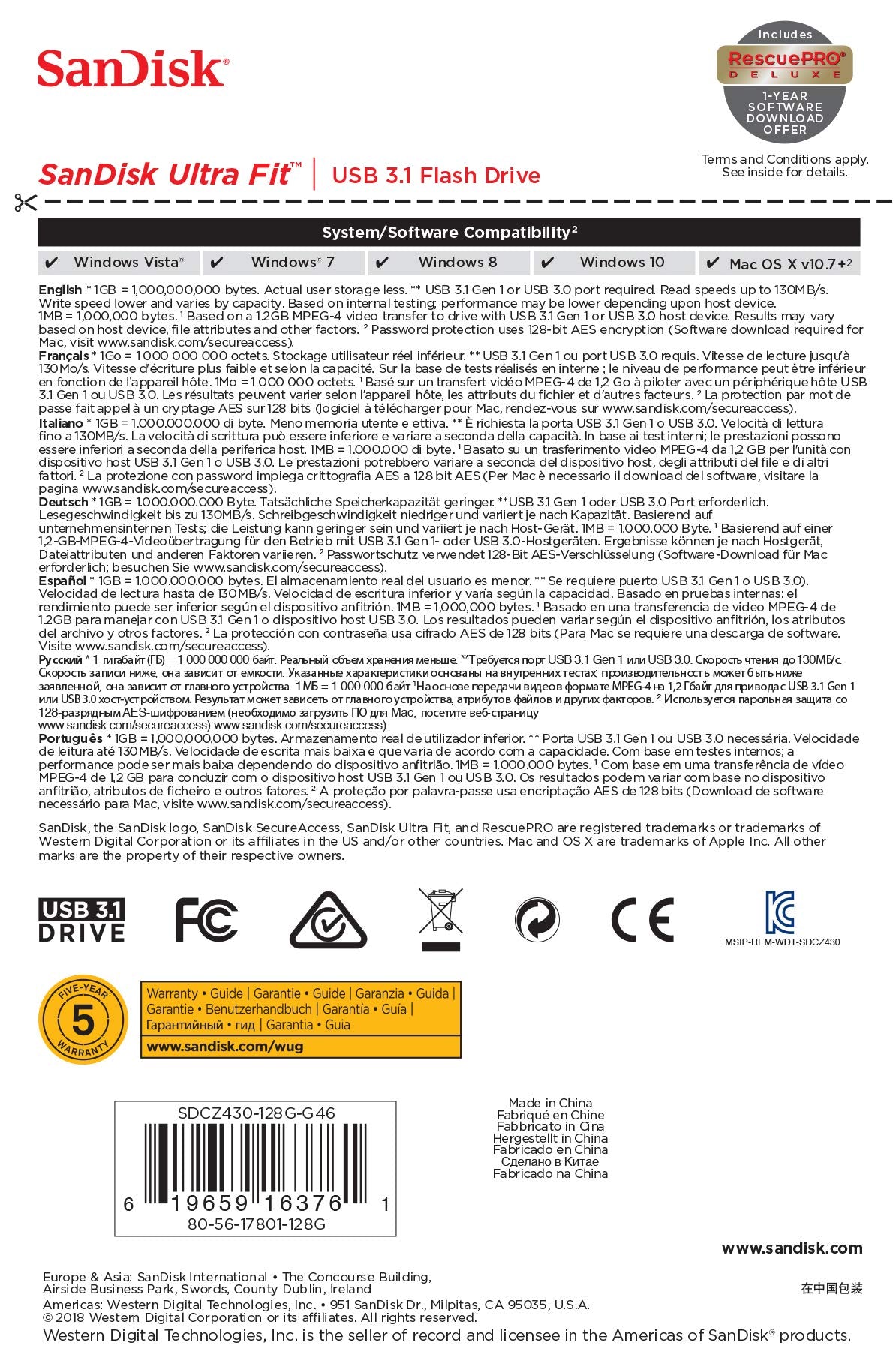 Sandisk Ultra Fit 128Gb Usb 3.0 Flash Drive - Sdcz43-128G-Gam46