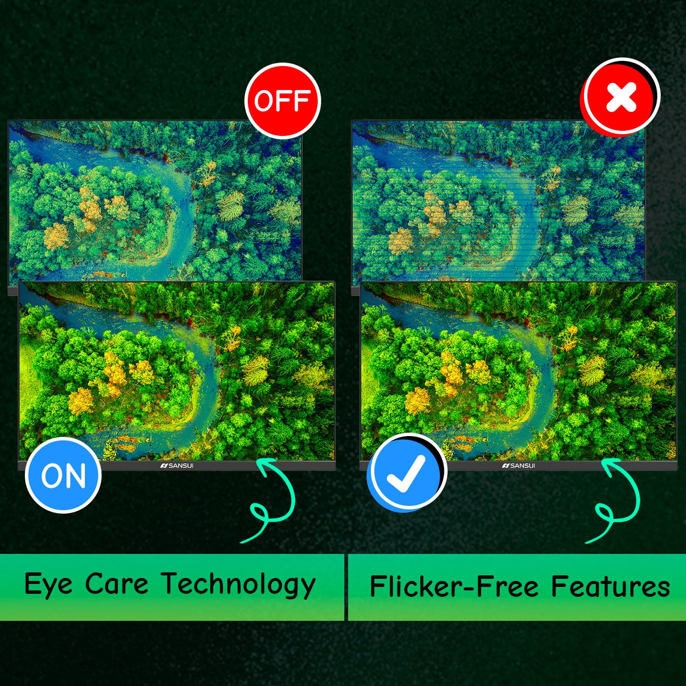 ?Important Features?Size:24 Inch Computer Monitor,Resolution:1920*1080P,Refresh Rate:75Hz,Reaction Time:5Ms,Color Gamut :99% Srgb (Ntsc 72%),Horizontal And Vertical Viewing Angle 178 Degrees, Tilt Adjustment -5-22,With 1.5M Hdmi Cable. ?Vivid Viewing?The 1920*1080P Resolution Monitor With Ips Panel, 99.99% Srgb (72% Ntsc) And 16.7M Display Colors Create Vivid And Lifelike Visuals. Make The Image More Enjoyable And Rich, Also Enable You To Experience Immersive Image Quality. ?Eye-Friendly Design?Blue Light Filter,Flicker-Free Technology, Adaptive Sync Technology Automatically Calibrates Frame Rates So You Can Enjoy Ultra-Smooth Game Play Or Working For All-Day Without Any Eye Strain.The 3-Sided Borderless Display Brings A Clean And Modern Aesthetic To Any Working Environment. In A Multi-Monitor Setup, The Displays Line Up Seamlessly For A Virtually Gapless View Without Distractions. ?Flexible Connectivity?By Plugging A Hdmi Cable Into This Computer Monitor, You Can Screen Share, And Transfer Data, Audio, And Video Quickly.Hdmi And Vga Ports Give You The Freedom And Flexibility To Connect To A Variety Of Devices, And Switch Between Office And Entertainment. ?What'S In The Box?Shipped With 24 Inch Monitor * 1, Stand * 1, Power Adaptor * 1, Hdmi Cable * 1, User Manual * 1. Sansui Offers A 30-Day Money-Back Guarantee And A 12-Month Warranty. If You Have Any Questions Or Concerns About Our Product, Please Don'T Hesitate To Contact Us.