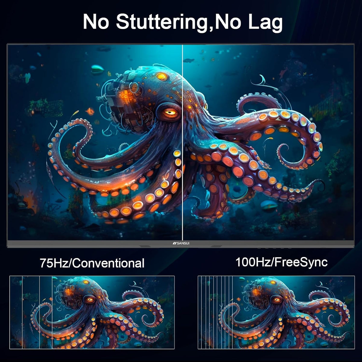 Sansui Computer Monitor 27 Inch Ips 100Hz 1080P Pc Monitor Hdmi,Vga Ports With Built In Speakers/Adaptive Sync/Frame Less/Vesa C