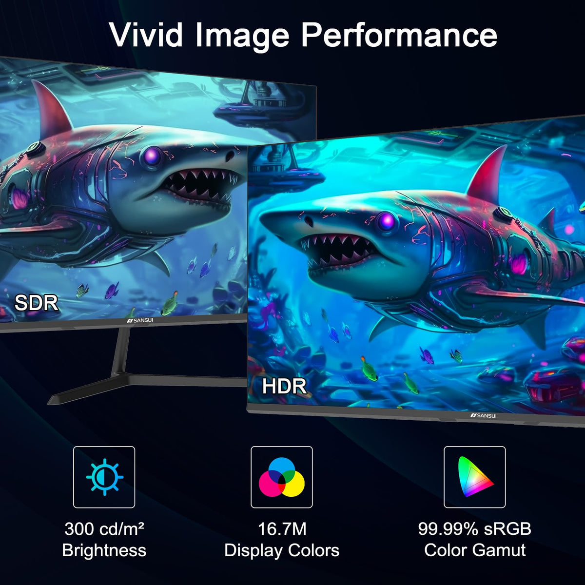 Sansui 27'' 100Hz Ips Vesa Monitor For Home, Game And Office | Brightness: 300Nits;Color Gamut: Srgb 110%;Display Colors: 16.7M (8 Bit);Response Time: 5Ms; Adaptive Sync Technology | Interface: Hdmi 1.4&Vga Ports(Hdmi Cable Included);2X2W Built-In Speakers. | Ergonomic Design: Easy Mount Stable Stand; -5
