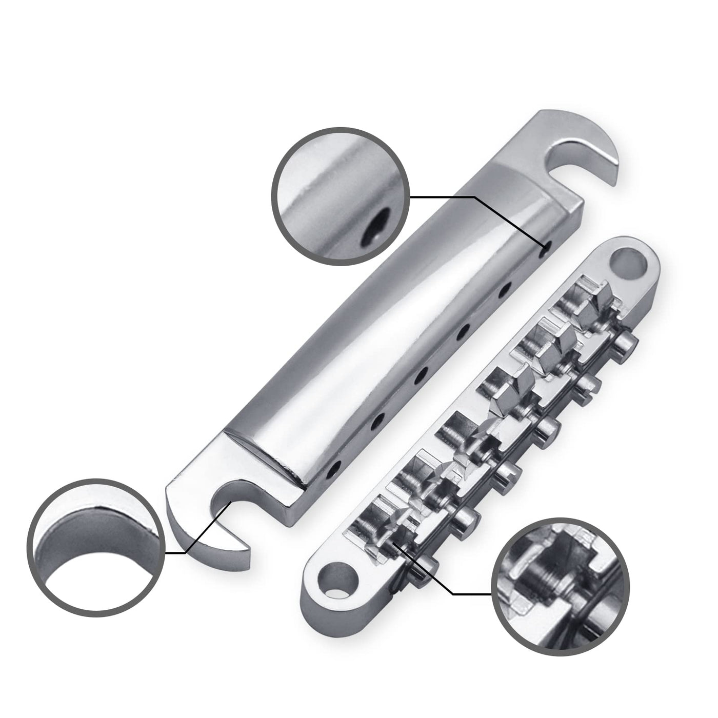 Saphue A Set Of String Saddle Tune O Matic Bridge And Tailpiece With Studs For Gb Lp Style Electric Guitar (Chrome)