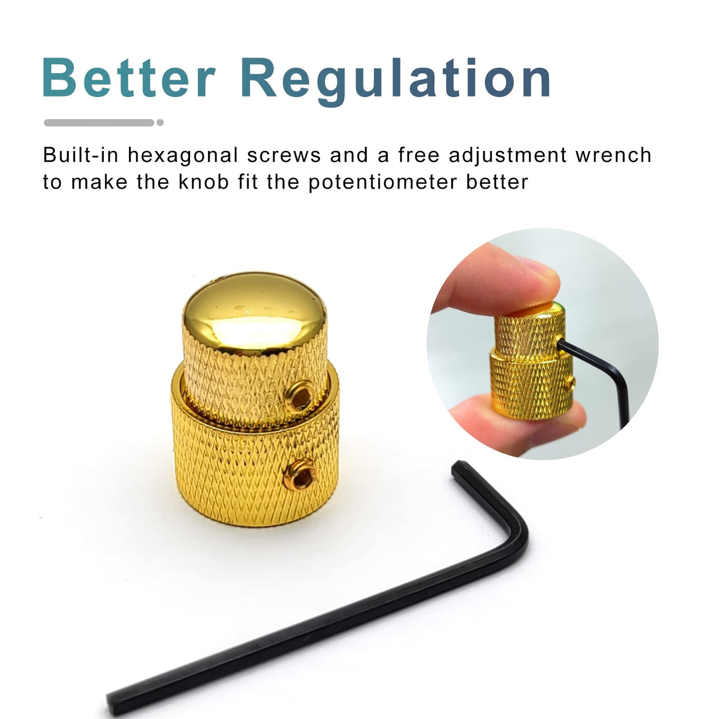Saphue Guitar Dual Concentric Stacked Control Knobs Sets Metal With Wrench Replacement For Electric Guitar Bass 2 Sets(Gold)