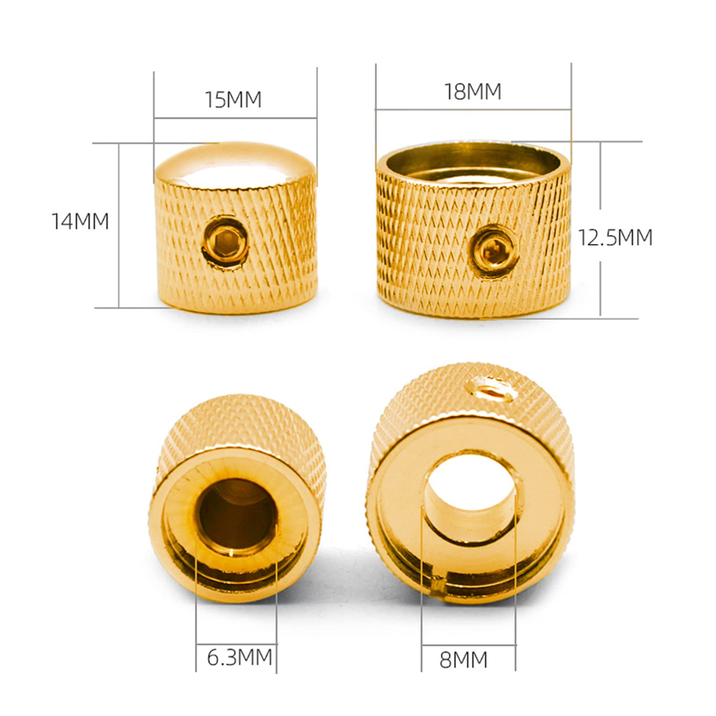 Specifications: Material: Alloy Metal Color: Gold Item Size: Refer To The Picture For Detailed Size Item Weight: 30G 106Oz Package Weight: 62G 219Oz Dimension: Top Knob Size: 14*15Mm Compatible With 63Mm Shaft Pots Base Knob Size: 125*18Mm Compatible With 8Mm Shaft Pots Package List: 2 * Dual Concentric Knobs, 1 * Wrench