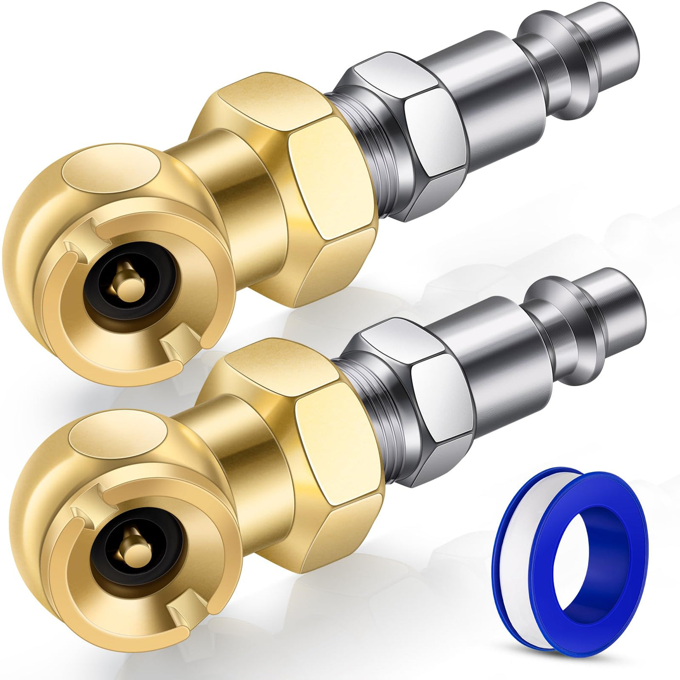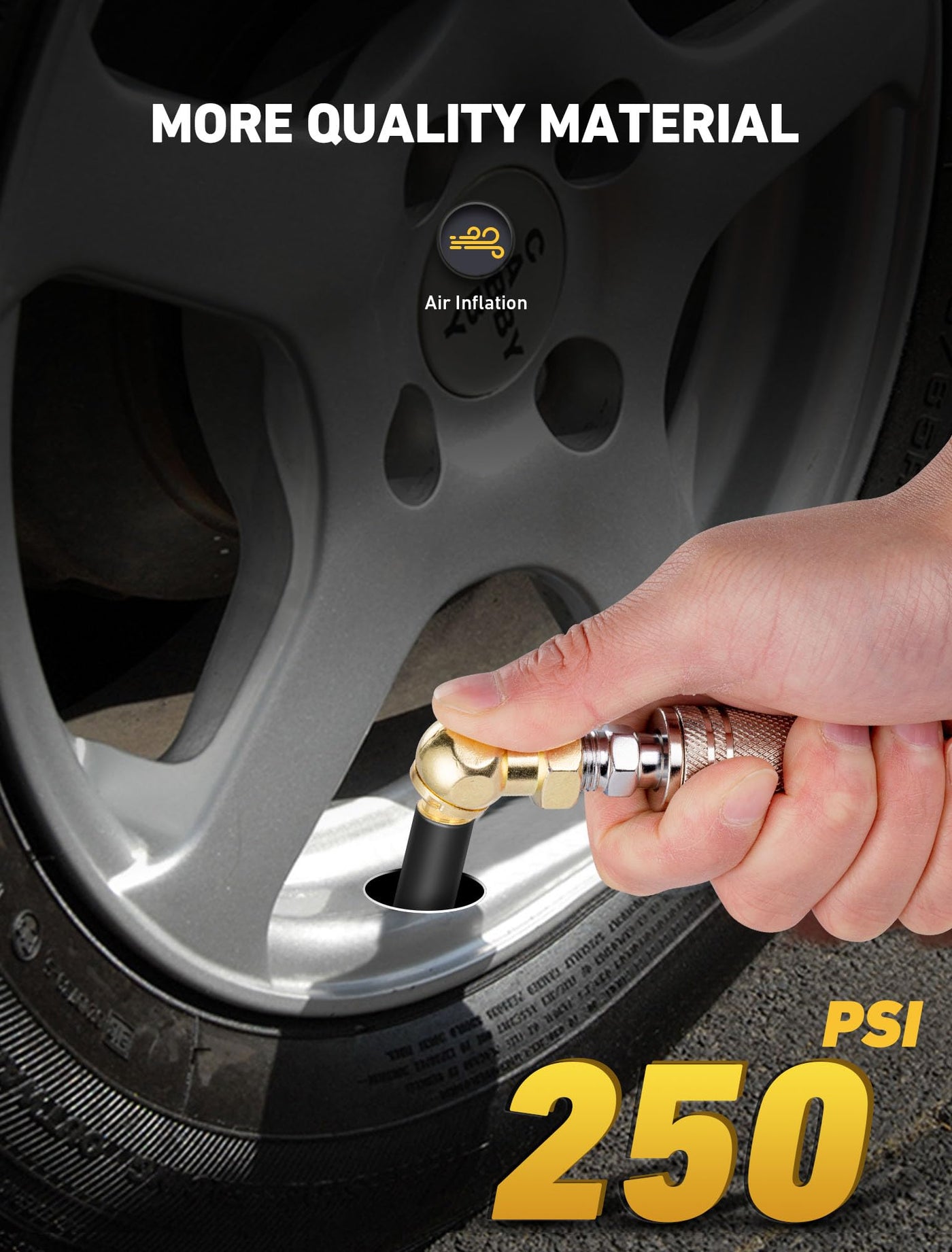 Sardvisa 2-Packs Portable Air Chucks,Brass Closed Ball Air Chuck With 1/4'' Npt Standard Quick Plug, Tire Inflator Gauge Nozzle For Air Compressor Accessories ?Closed Ball Tire Chuck?:Sardvisa Heavy Duty 2 Packs 1/4'' Fnpt Air Chucks With 2 Pcs 1/4'' Mnpt Quick Plug.300 Psi Maximum Air Pressure. Suitable For Commercial And Industrial Air Filling Applications. ?No Nore Air Leaks?: Closed Ball Structure With Waterproof Sealed Raw Tape, Reduce The Thread Gap To Prevent Air Leakage ?More Quality Material?: The Ball Inflator Nozzle And Quick Plug Are All Made Of Brass Metal Material, Which Is Resistant To Wear And Aging, And Will Not Rust Even When Used In A Humid Environment. ?Easy To Use?: When You Want To Work With A Closed Ball Pneumatic Chuck, Just Connect It By Turning The Screw.Two Ways To Connect To Meet Your Needs. ?Wide Application?: Sardvisa 2 Pcs Tire Air Chuck Set Can Be Applied For Air Pump And Compressor Accessories, And Also Can Be Applied For Trucks, Buses, Cars, Bicycles, Motorcycles And More. Great Tire Inflator Attachment Brings Convenience To Your Life.