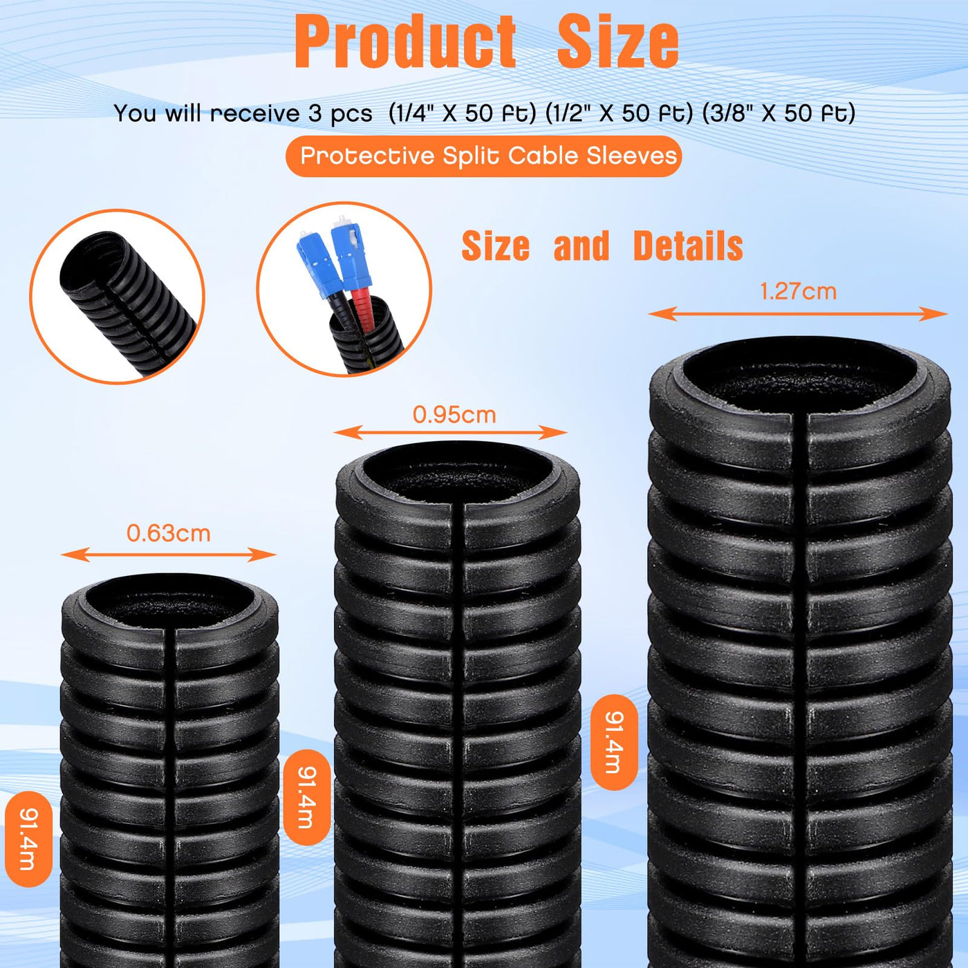 Sasylvia 1/4'' X 300 Ft, 1/2'' X 300 Ft, 3/8'' X 300 Ft Split Wire Loom Tubing Wire Conduit Bulk Flexible Electrical Wire Cover