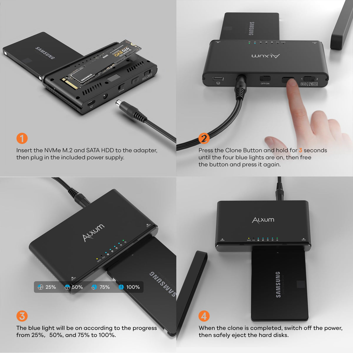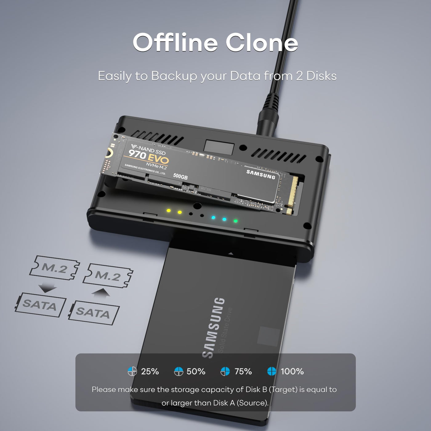Sata Ssd M.2 Nvme Enclosure Usb C 3.2 10Gbps Adapter M.2 Enclosure Supports Hot Swapping And Offline Cloning With 2.5''/3.5''