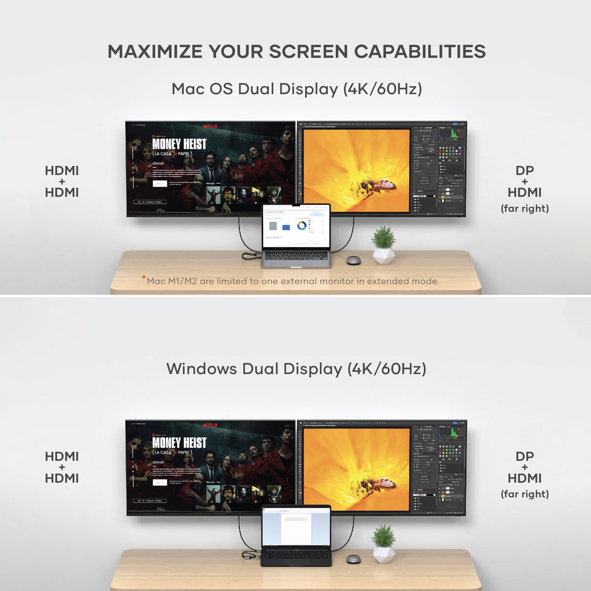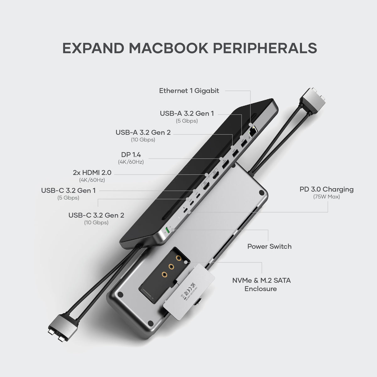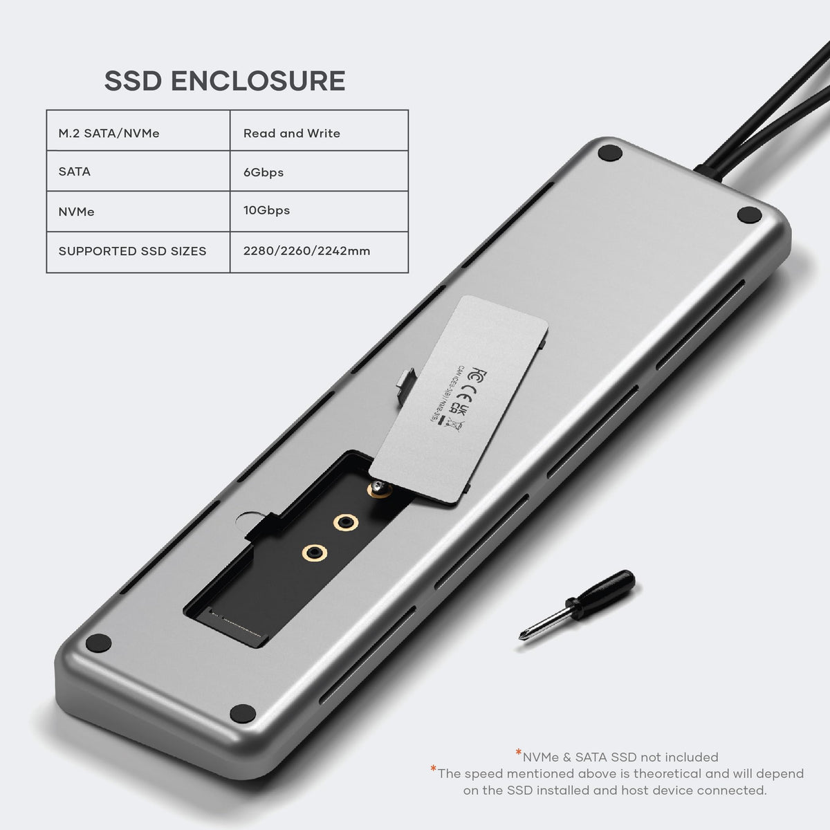 Experience Ultimate Connectivity And Efficiency With The Satechi Dual Usb-C Docking Station And Stand, Designed For Both Macbook And Windows Users. This Versatile Hub Features Dual 4K Hdmi, Displayport, And 75W Usb-C Pd Charging, Ensuring Seamless Power Delivery To Your Devices. With Two Usb-C Data Ports And Two Usb-A Ports, You'Ll Enjoy Rapid Data Transfers And Extensive Connectivity Options. The Built-In Ethernet Port Guarantees Stable Internet Connections, While The Sata And Nvme Ssd Enclosure Provides High-Speed Storage Solutions. Perfect For Professionals And Multitaskers, This Docking Station Supports Dual 4K Displays For Enhanced Productivity And A Streamlined Workspace. Crafted From Durable, Aircraft-Grade Aluminum, Its Sleek Design Not Only Complements Your Devices But Also Conserves Desk Space. Upgrade Your Setup With The Satechi Dual Usb-C Docking Station, The Ideal Companion For Modern, Efficient Computing.