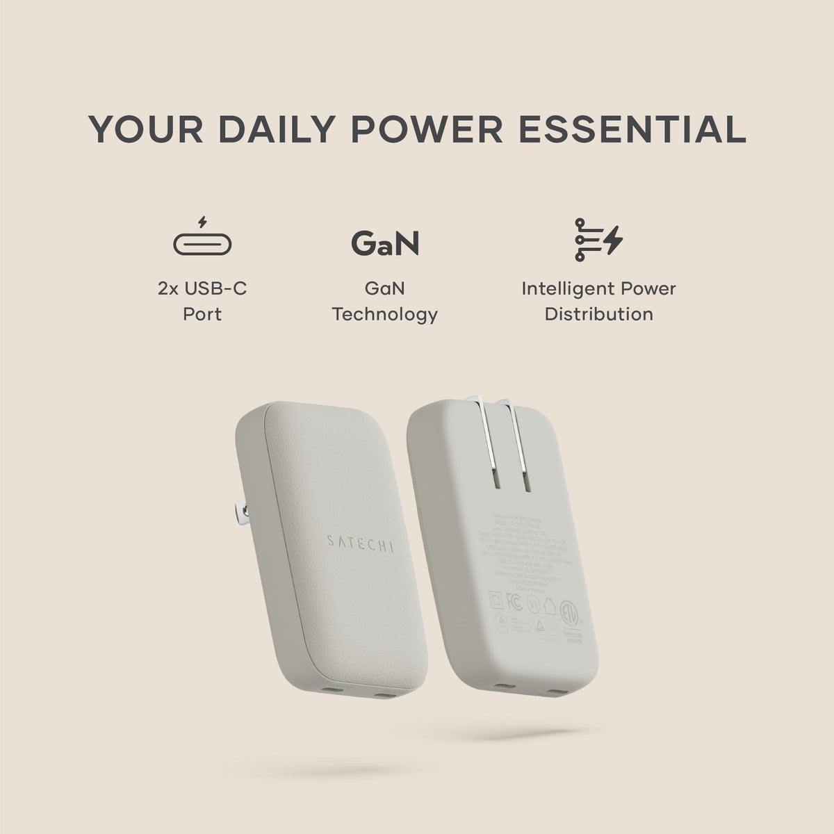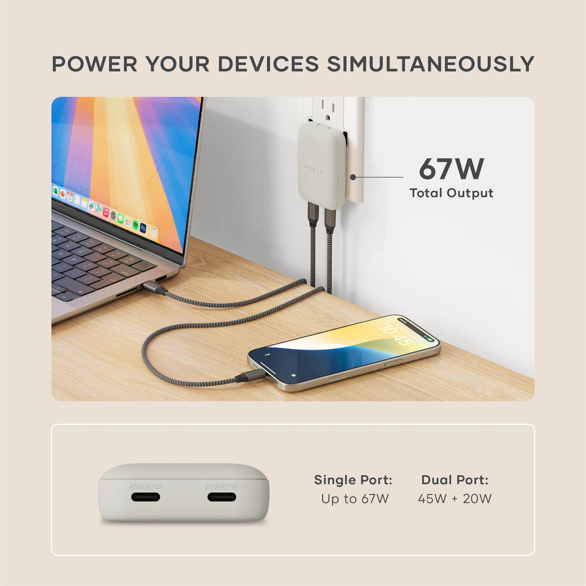 Satechi Onthego 67W Wall Charger, Gan Usb C Travel Charger With 2 Usb-C Pd Fast Charging Ports, For Macbook Pro/Air M4/M3, Ipad