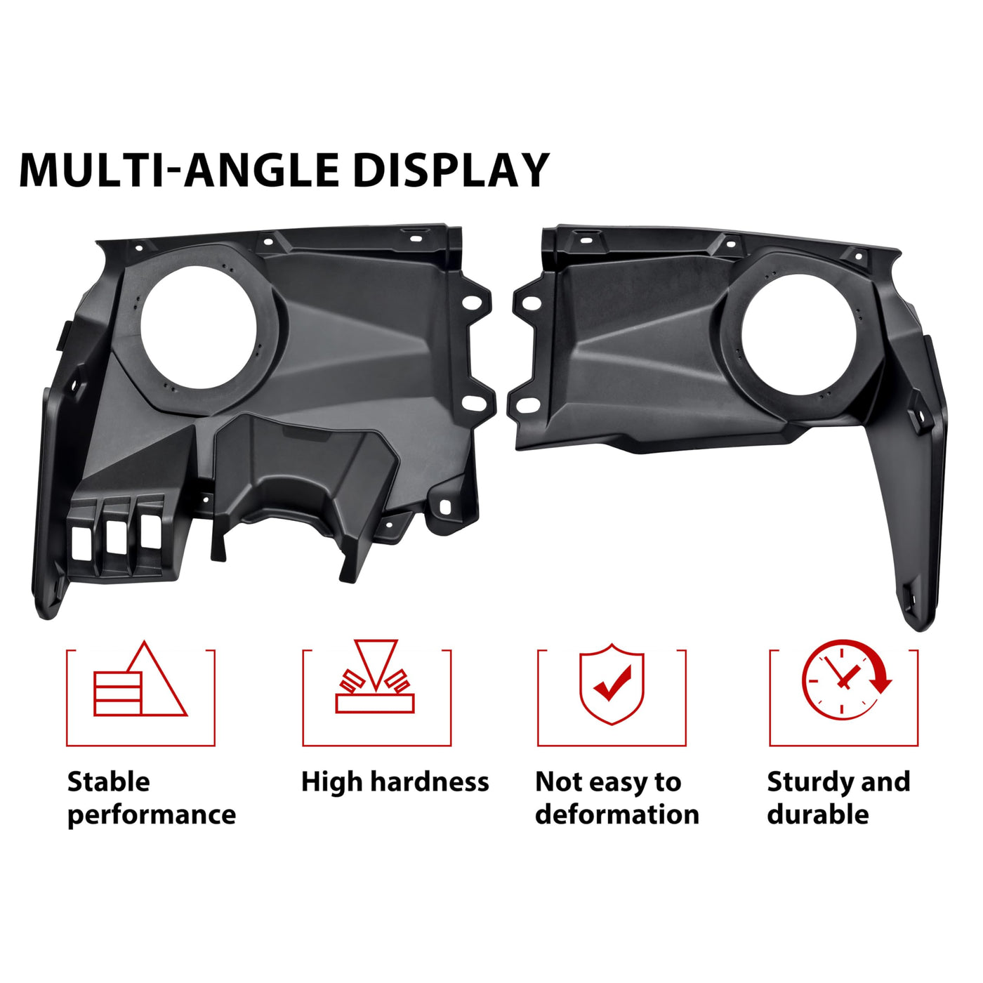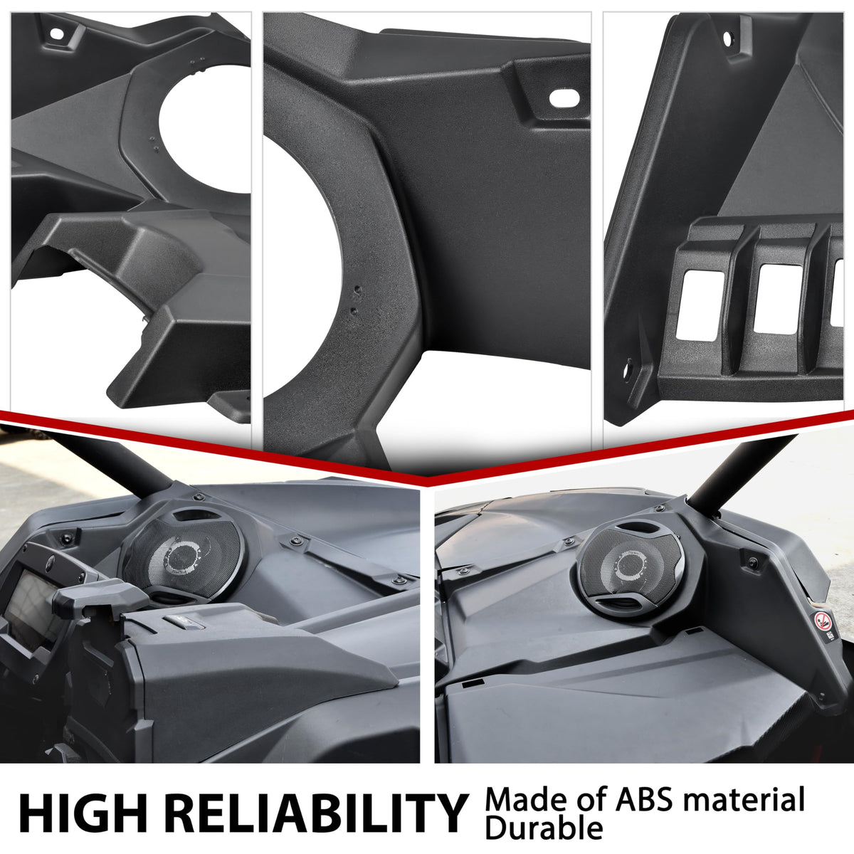 Fit For Can Am Maverick X3 Turbo 2016- 2024 / X3 Turbo R 2016- 2024 / X3 X Ds Turbo 2016- 2024 / X3 X Rs Turbo 2016- 2024 / X3 Max Turbo 2016- 2024 / X3 Max Turbo R 2016- 2024 / X3 Max Ds Turbo R 2016- 2024 / X3 Max Rs Turbo R 2016- 2024; When You Driving In Snow, Water, Sand Environment, This Product Can Play An Important Role, To Prevent The Mud, Dirt, Debris Or Waters To Enter Your Speakers, And Prevent Speakers Falling Down. Made Of Tough High Density Abs Plastic, Most Of 6.5 Inch Speakers Are Acceptable. Easy To Install, Match With Factory Style Plastic Rivets. 2Pcs Speaker Panels Included, Mounting Hardware And Install Instructions Also Included. Note: The Speakers In Product Images Are Not Included.