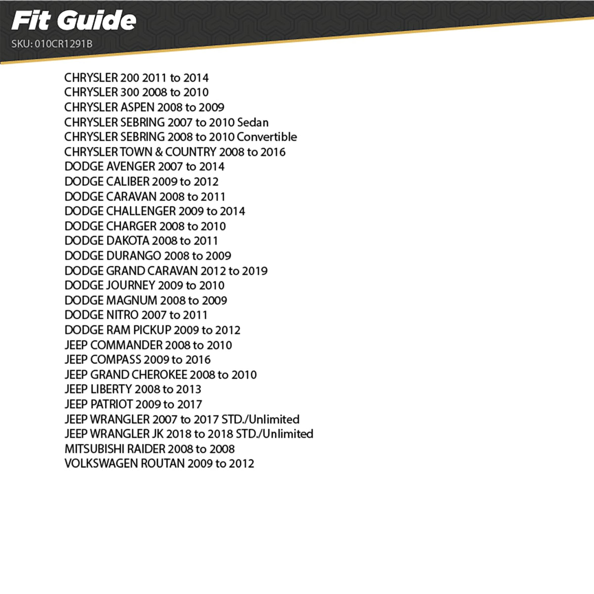 Perfect Fit - Designed specifically for Select 2007-19 Chrysler, Dodge, Jeep, Mitsubishi and VW vehicles, the Scosche CR1291B dash kit ensures a seamless fit for your aftermarket car stereo. See Fit Guide in images to verify your vehicle is compatible. | Enhanced In-Car Aesthetics - With its sleek design, this Double DIN stereo dash kit blends perfectly with your vehicle's interior, providing a factory-installed look for your aftermarket radio. | Easy Installation - The Scosche CR1291B radio installation kit comes with all necessary hardware, making it simple to install without the need for professional help. No special tools required. Includes detailed step-by-step instructions. | High Compatibility - Scosche Double DIN Kits fit True Double DIN stereos with a max faceplate opening of 96.8mm x 173mm. Some Radios labeled as Double DIN are actually oversize. You may have to do some minor trimming of the kit to make a larger Radio fit. | Durable Construction - Crafted from high-quality materials, the Scosche CR1291B Double DIN radio installation kit is designed to securely hold your stereo in place and withstand the rigors of daily use. | Trusted Brand - Backed by Scosche's Limited Lifetime Warranty and Lifetime Tech Support. Scosche, known for its commitment to quality car audio solutions, means you can trust the Scosche CR1291B Dash Kit to deliver exceptional performance.