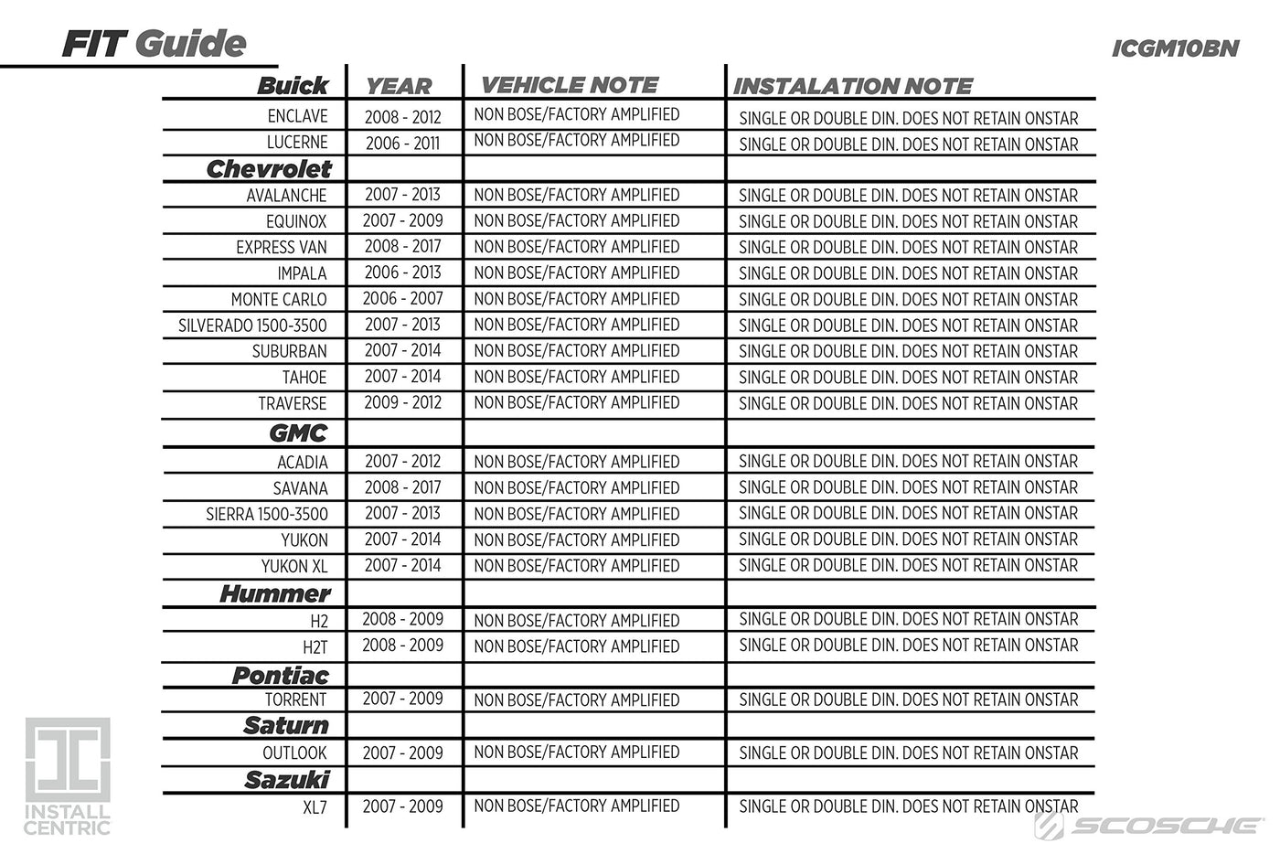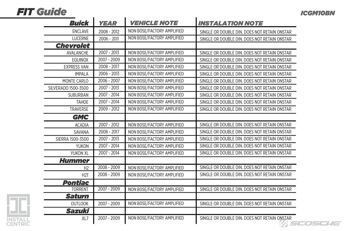 Scosche ICGM10BN Complete Double/Single DIN Stereo Installation Kit for Select Non Amplified 2006 17 General Motors Vehicles No Steering Wheel Remote See Fit Guide in Images to Verify Your Vehicle