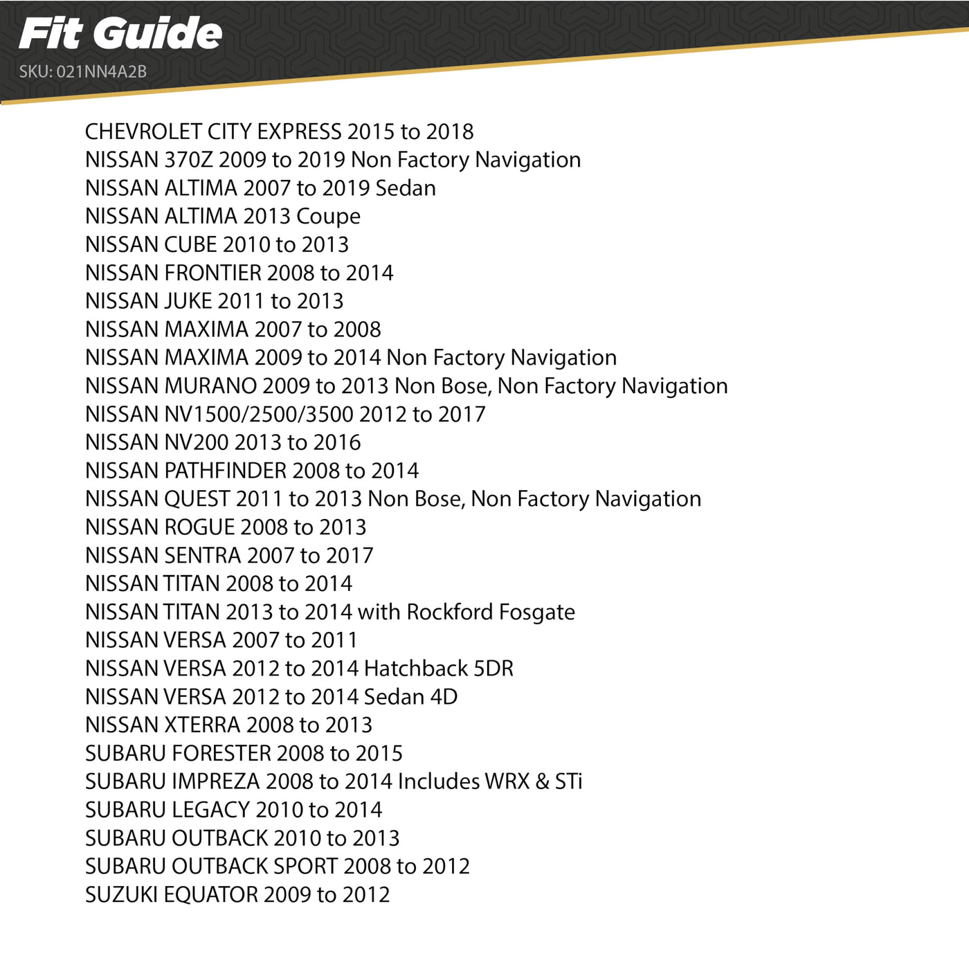 Seamless Integration - The NN4A2B Wire Harness and Antenna Adapter Bundle by Scosche ensures a perfect fit for your vehicle without cutting any factory wiring, making aftermarket radio installation effortless. See Guide in images to verify your vehicle.|Comprehensive Kit - This bundle includes both a wire harness and an antenna adapter, providing everything you need for a complete aftermarket car stereo wiring upgrade in one convenient package. Pre-terminated with butt connectors to save install time.|High Compatibility - Designed for a wide range of Nissan and Subaru models using the factory radio harness and antenna connector. This wiring adapter uses industry standard color-coded wires compatible with most car stereo systems, ensuring versatility.|Enhanced Audio Quality - This wiring harness and antenna adapter kit use factory quality automotive grade wires and connectors, ensuring a safe and secure connection for optimal signal transmission and superior sound performance from your new car stereo.|Easy Installation - The Scosche NN4A2B bundle simplifies the installation process with color-coded wires, crimp connectors and a user-friendly design, allowing even DIY enthusiasts to upgrade their car audio system without the need for professional help.|Trusted Brand - Backed by Scosche's Limited Lifetime Warranty and Lifetime Tech Support. Scosche, known for its commitment to quality car audio solutions, means you can trust the Scosche NN4A2B Radio Harness Kit to deliver exceptional performance.