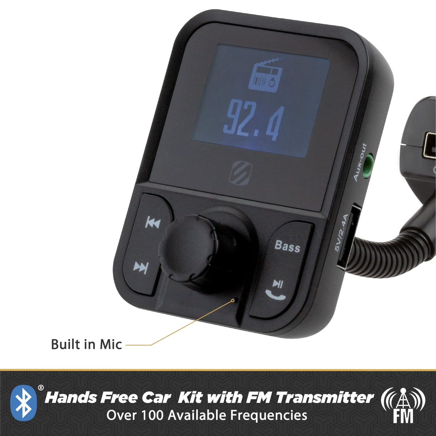 Scosche SBTFM1 XCES0 Bluetooth 5.0 FM Transmitter w/ Dual USB Charger Ports, LCD Screen, Adjustable Neck & Aux Port, Wireless Radio Bluetooth Adapter, Hands Free Car Kit for Phone Calls & Music Player