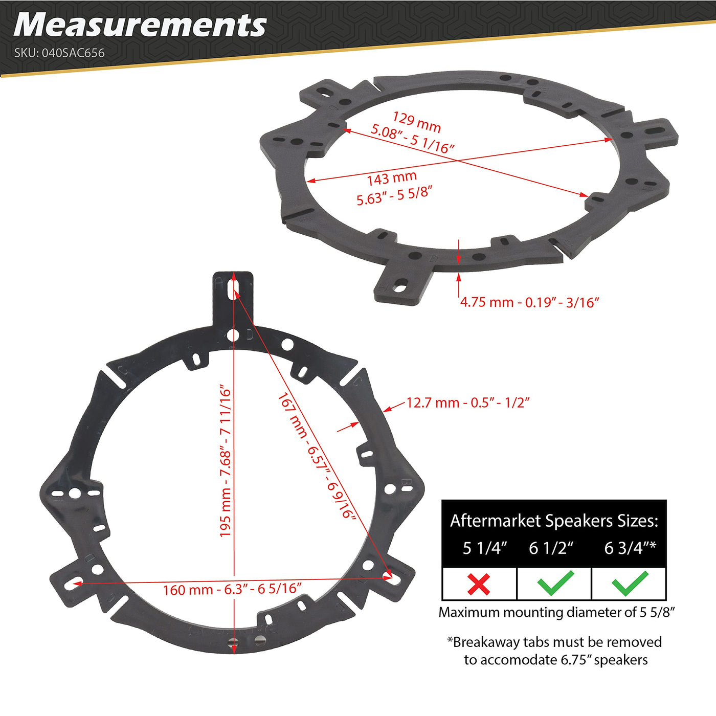 • Q: Can I install aftermarket speakers using these adapters? A: Yes, the Scosche SAC656 adapters allow for the installation of aftermarket 6.5 or 6.75-inch speakers in your vehicle. They ensure a seamless integration, enhancing your audio experience without compromising on sound quality.