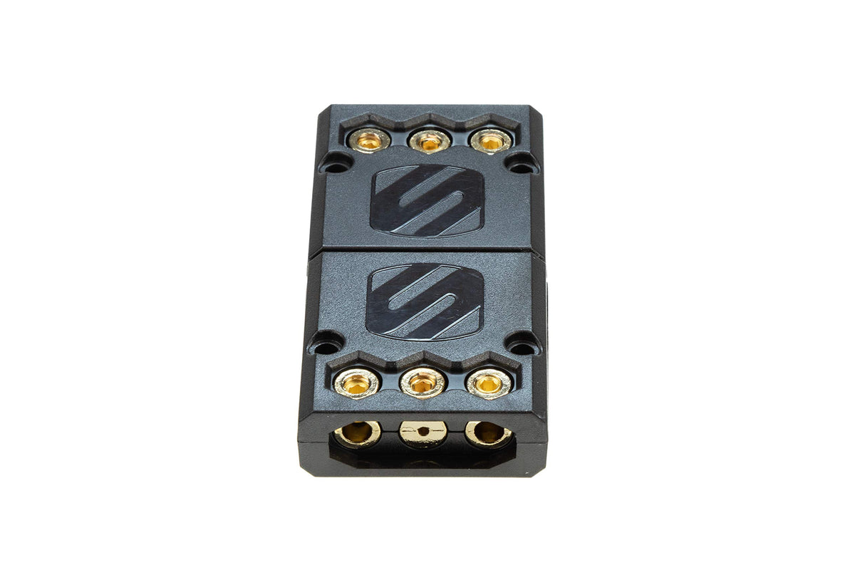 The Scosche UAKP Kwik Plug is a 8 AWG quick-release power connection for your amplifiers and active bass enclosures. Connects the positive, negative and remote power wires with the positive, negative and remote amplifier wires. Using a size 3 Allen key, loosen the hex screws on the Kwik Plug to connect the positive, negative and remote power wires on one side of the Kwik Plug and the positive, negative and remote power wires on the other side of the Kwik Plug. To ensure a correct connection is made, one side of the Kwik Plug is marked amplifier and the other is marked power. Once properly wired, tighten the hex screws and then connect both ends of the Kwik Plug together. Capable of taking up to 8AWG cable. Amplifier wires are sold separately. Made from high-quality ABS plastic and gold-plated terminals for durability and long-term use.
