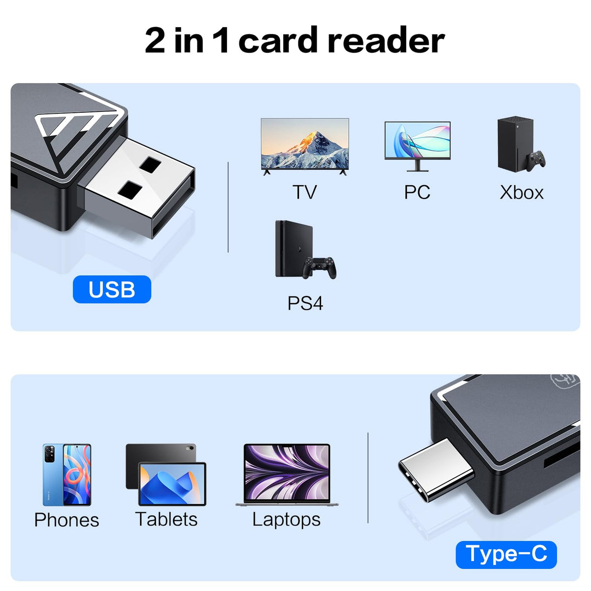 Sd Card Reader, Smartq Dual Connector Usb 2.0/Usb C Memory Card Reader Adapter, Compatible With Sd/Micro Sd/Sdhc/Sdxc/Mmc [Card
