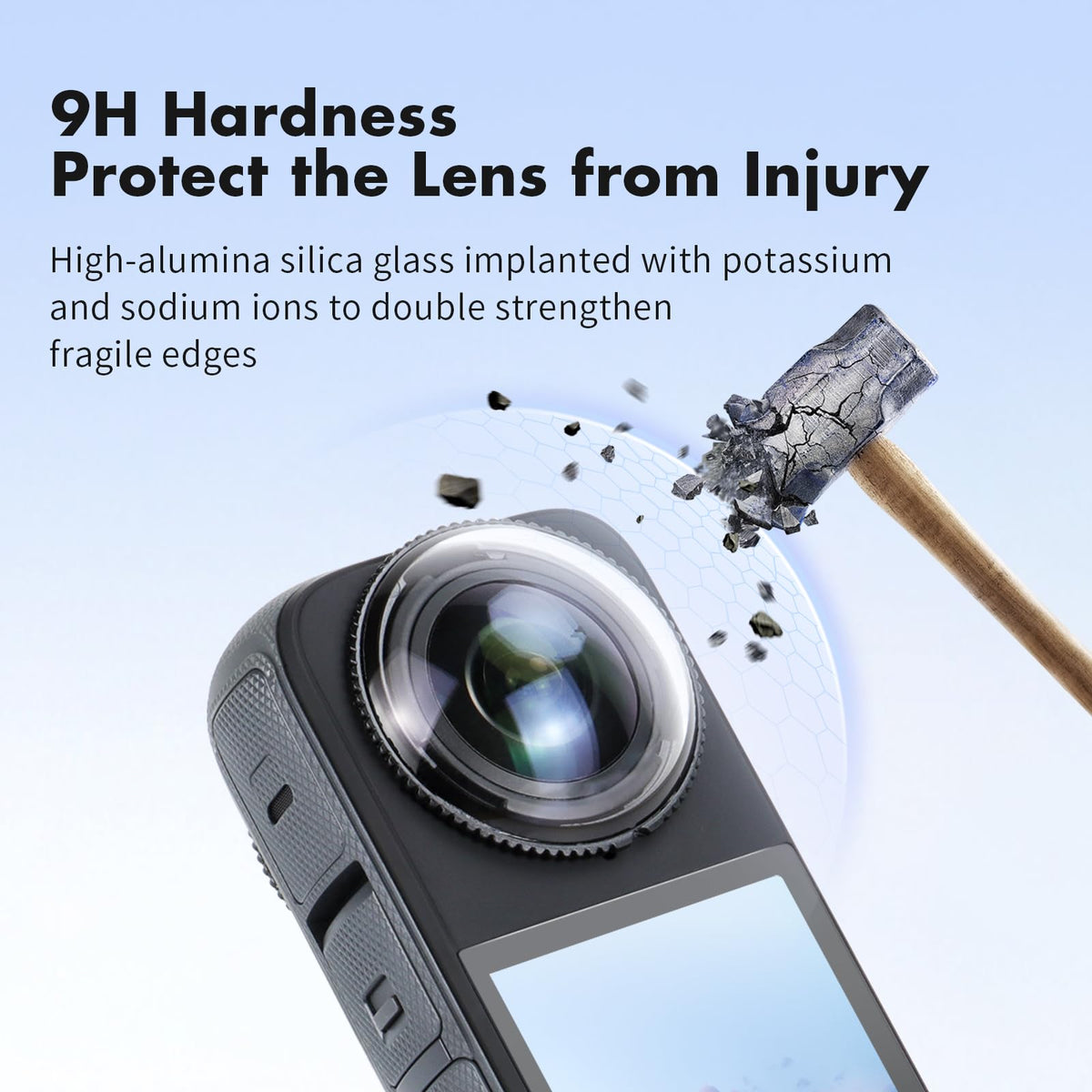 Seasky X4 Premium Lens Guards Specifically Designed For Insta360 X4 Camera, Made Of Toughened Glass With Multi-Layer Coating Process, With 9H Hardness, Excellent Anti-Scratch Ability And High-Definition Light Transmittance, Snap-On Mounting Method, Which Can Fully Protect The Expensive Lens Of Your Insta360 X4 Camera